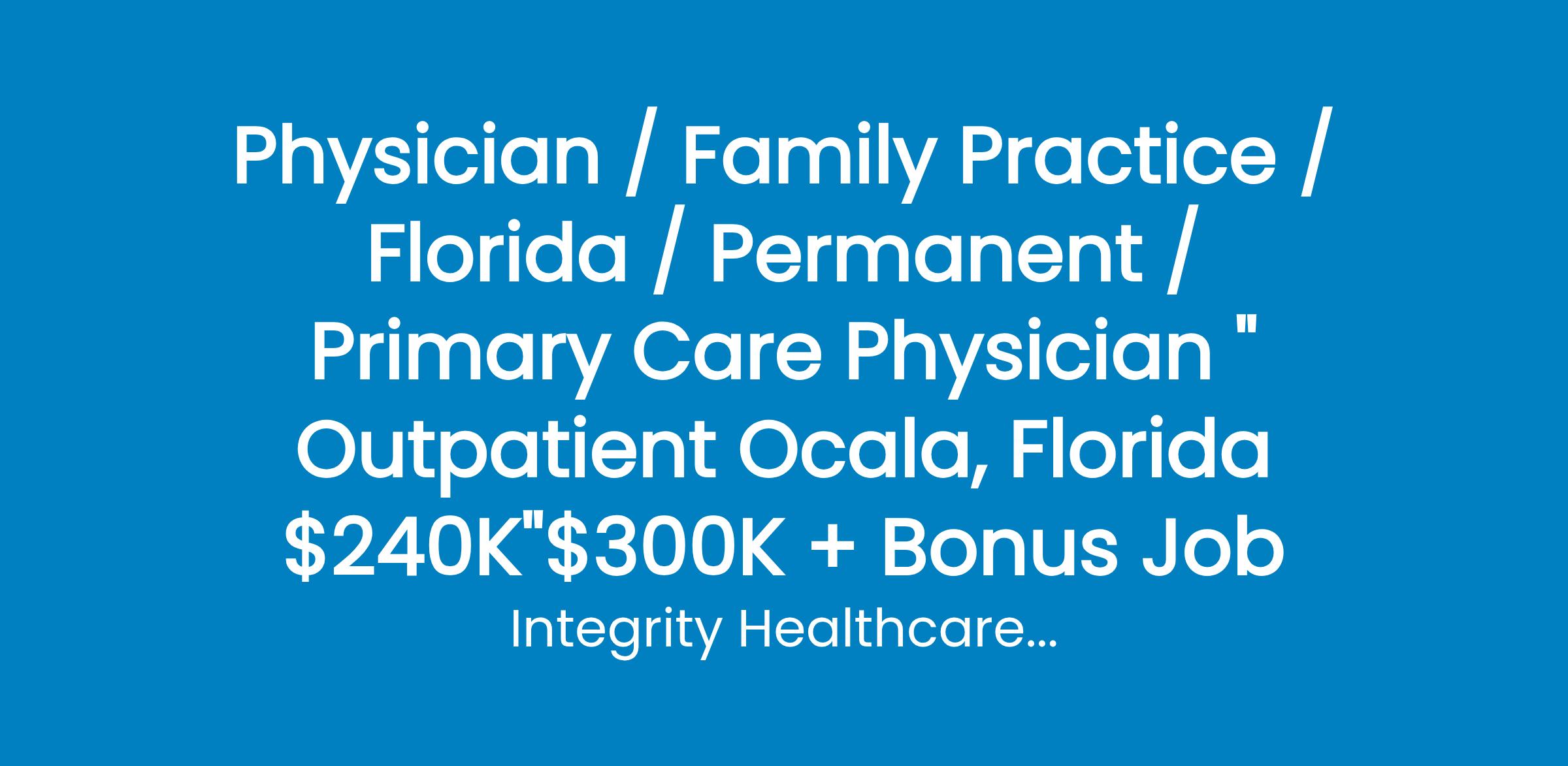 Join a physician-led team providing high-quality outpatient care in Ocala, FL " known for its horse farms, outdoor lifestyle, and affordable living. Enjoy a Monday"Friday schedule, strong clinical support, competitive pay, excellent benefits, and relocation assistance. Board Certified/Eligible in Internal, Family, or Geriatrics required.
