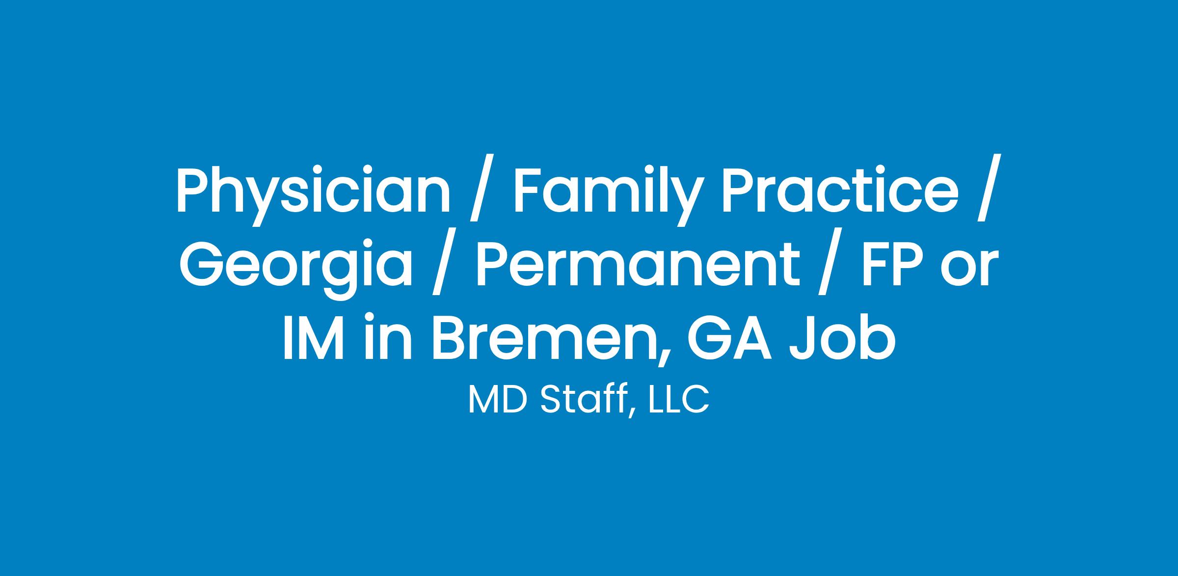 Seeking a Family Practice or Internal Medicine Physician in Georgia Schedule would be 8am - 5pm, M-F Practice setting: Outpatient The ideal candidate must be BC/BE Family Medicine, Internal Medicine or IM/PED Located near Pine Lake, GA If you are interested in hearing more about this opportunity, please call or text HDA at . You can also reach us via email at . Please reference Job ID .