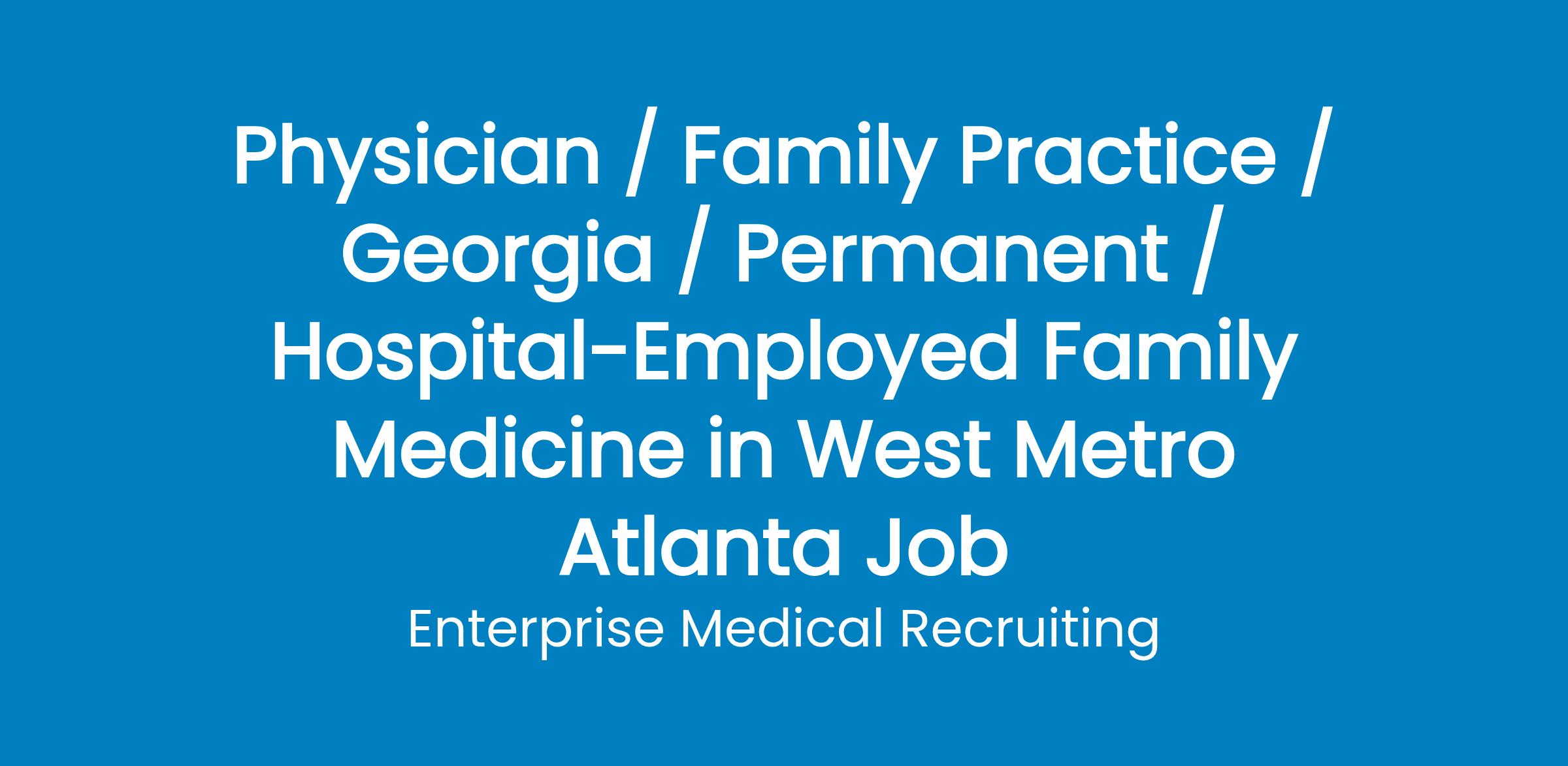 Hospital-Employed Family Medicine physician is needed for a 100% Outpatient office in West Metro Atlanta.