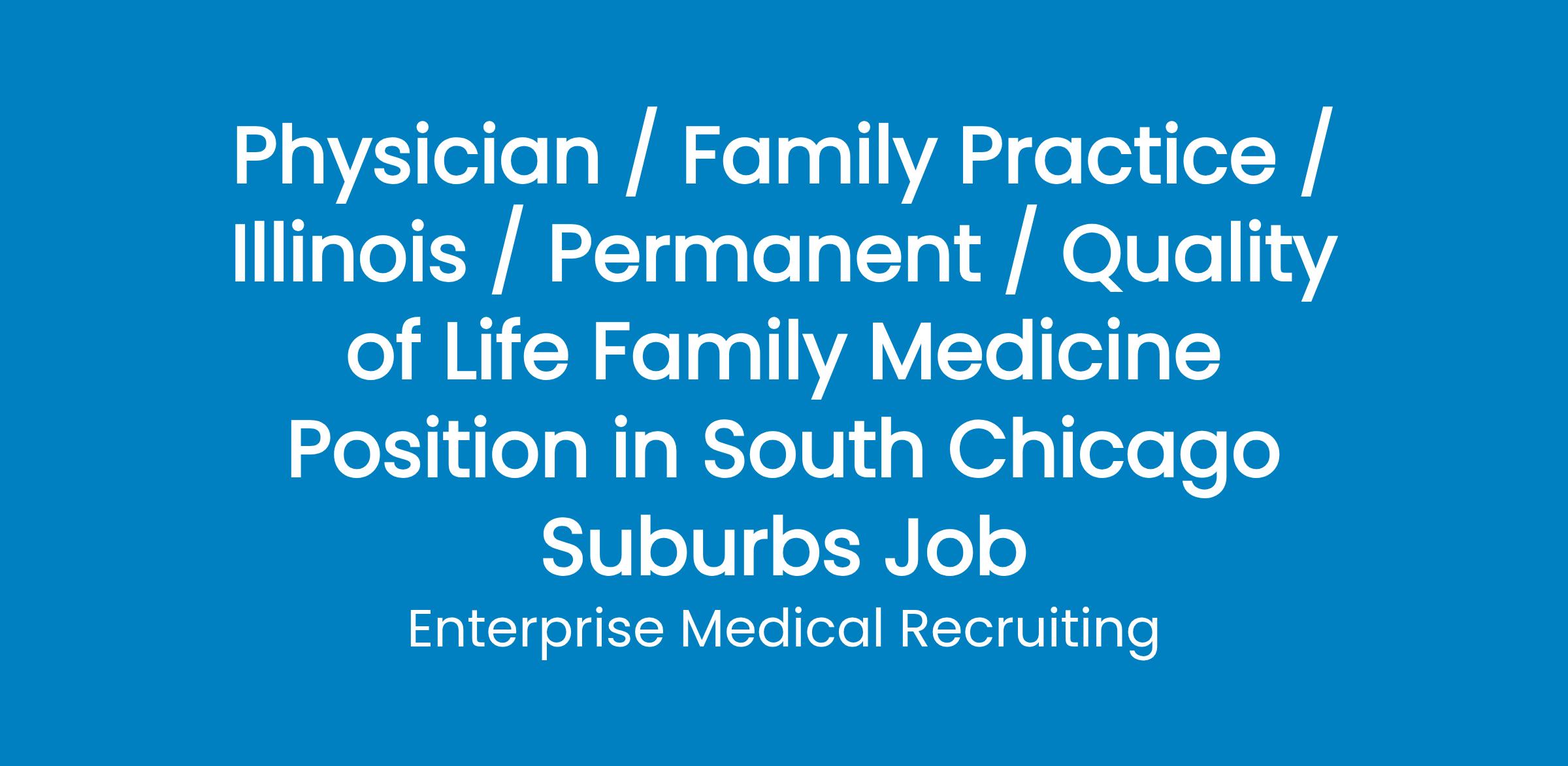An accomplished & collegial group of physicians has outpatient Family Medicine openings in Chicago Heights, Tinley Park, and Olympia Fields, IL . This group of doctors strongly embraces the philosophy that comfort, compassion and patient satisfaction are key elements of quality care, and personally attend to their patients throughout the entirety of their care.