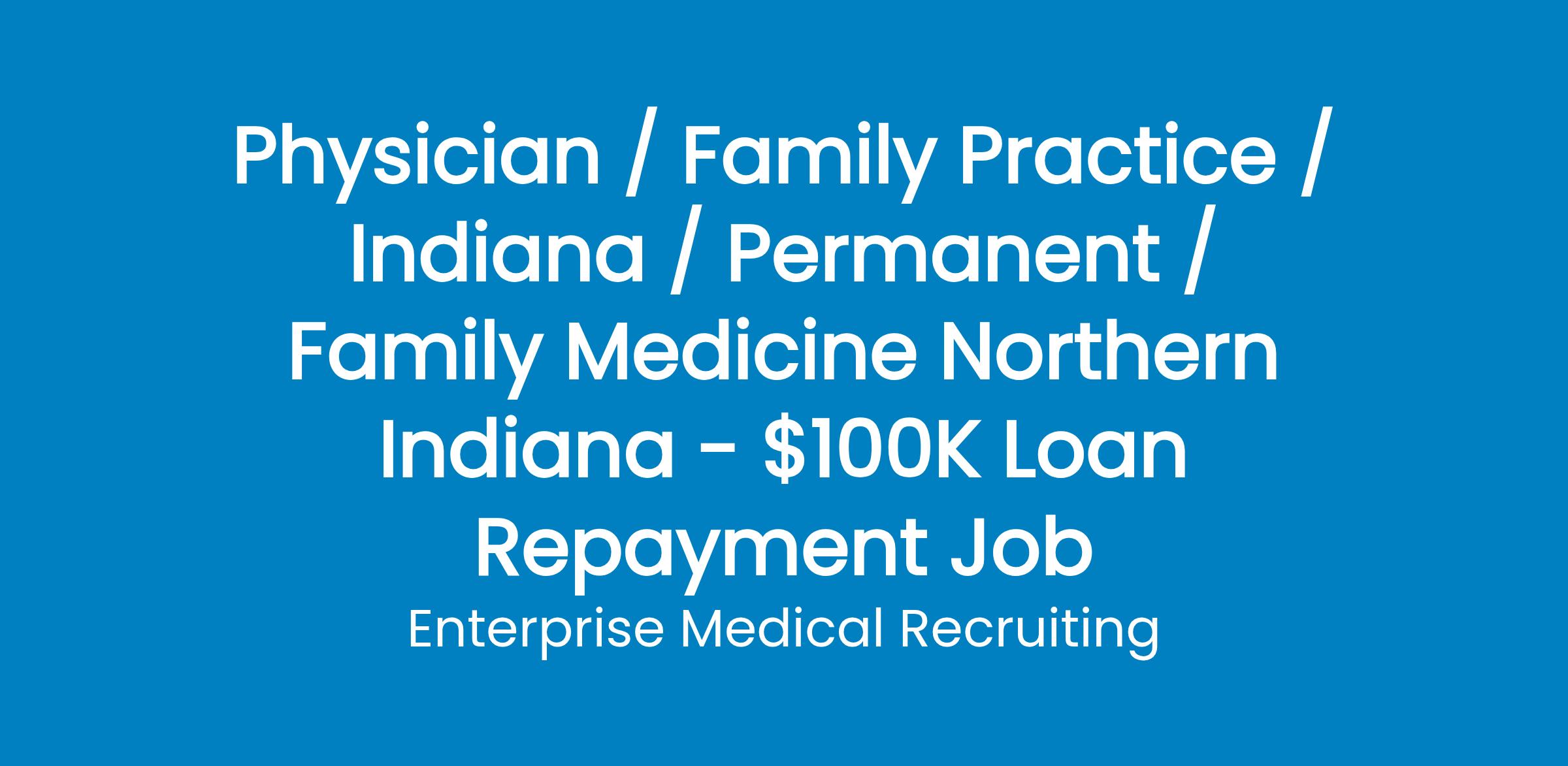 This is a fantastic outpatient opportunity to join a well-established Community Health Clinic north of Indianapolis! The group is seeking additional Board Certified or Board Eligible Family Medicine physicians to join their team!