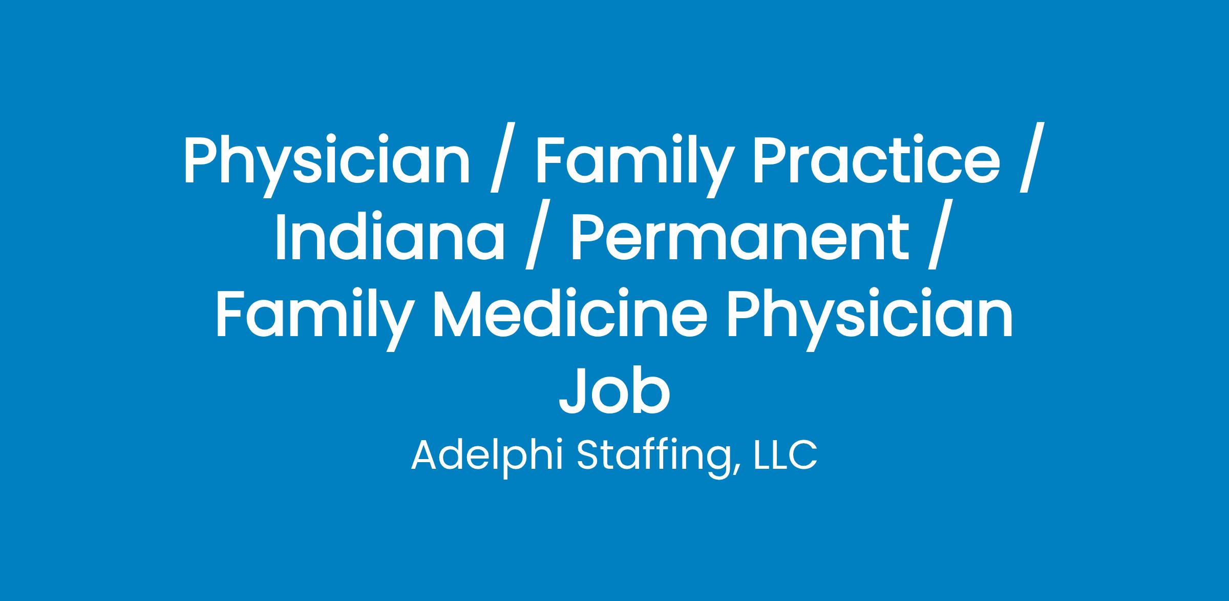 Physician / Family Practice / Indiana / Permanent / Family Medicine Physician Job