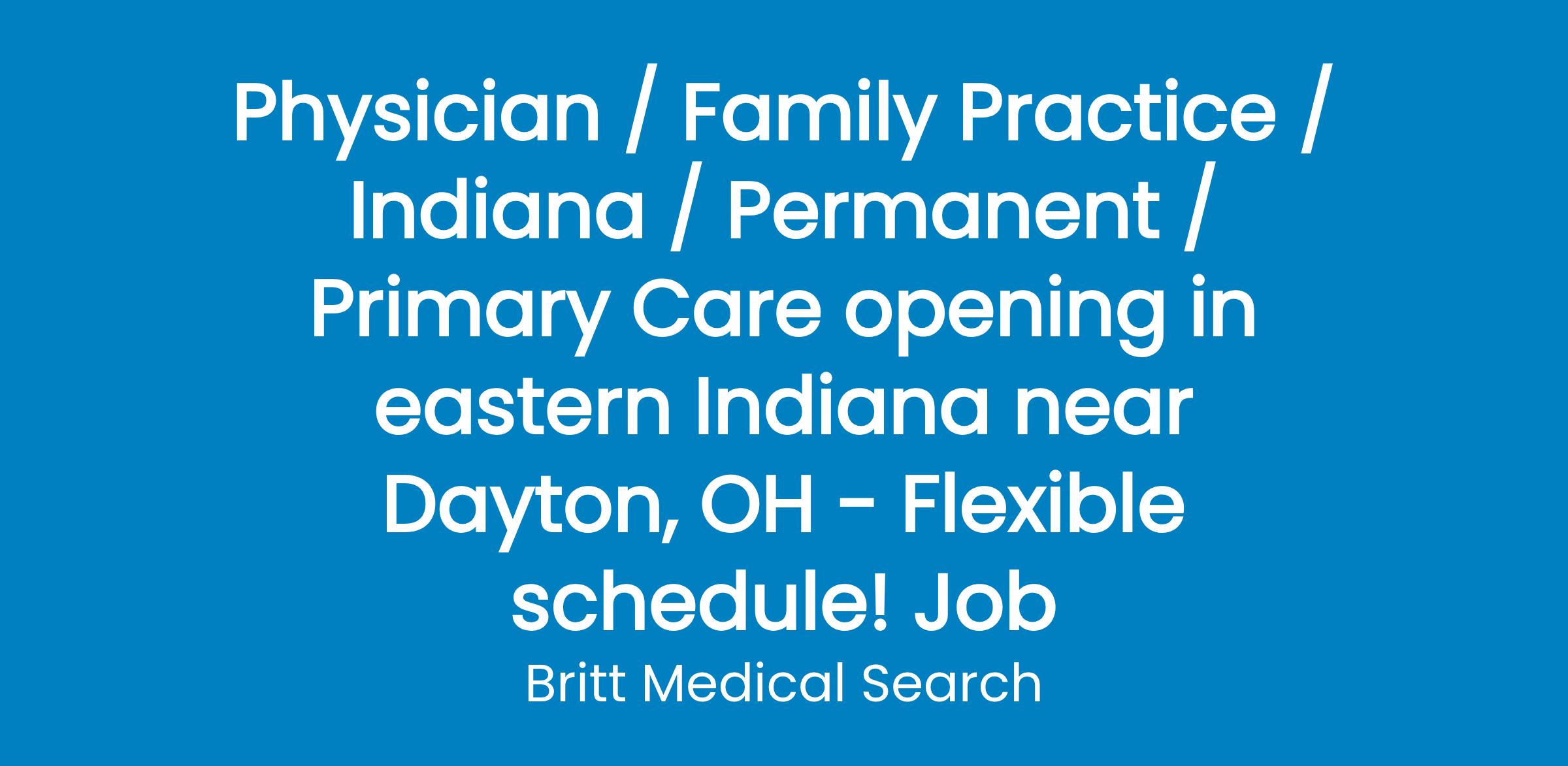 Seeking a patient-centered and empathetic BC/BE Family Medicine Physician to join our Primary & Specialty Care Services team in eastern Indiana.