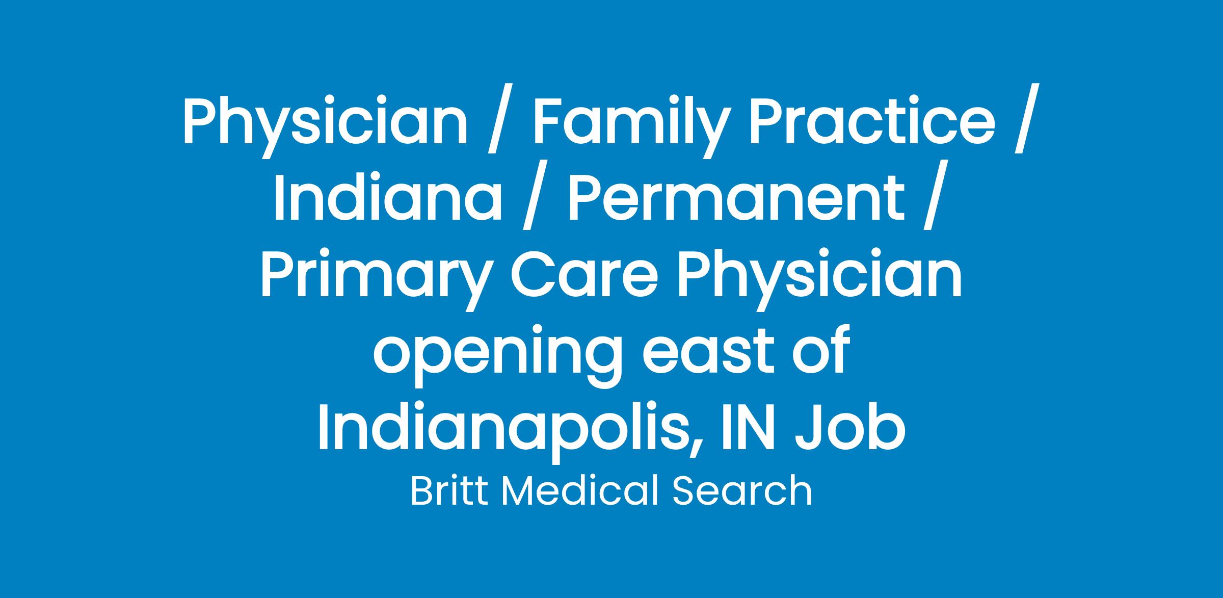 Physician / Family Practice / Indiana / Permanent / Primary Care Physician opening east of Indianapolis, IN Job