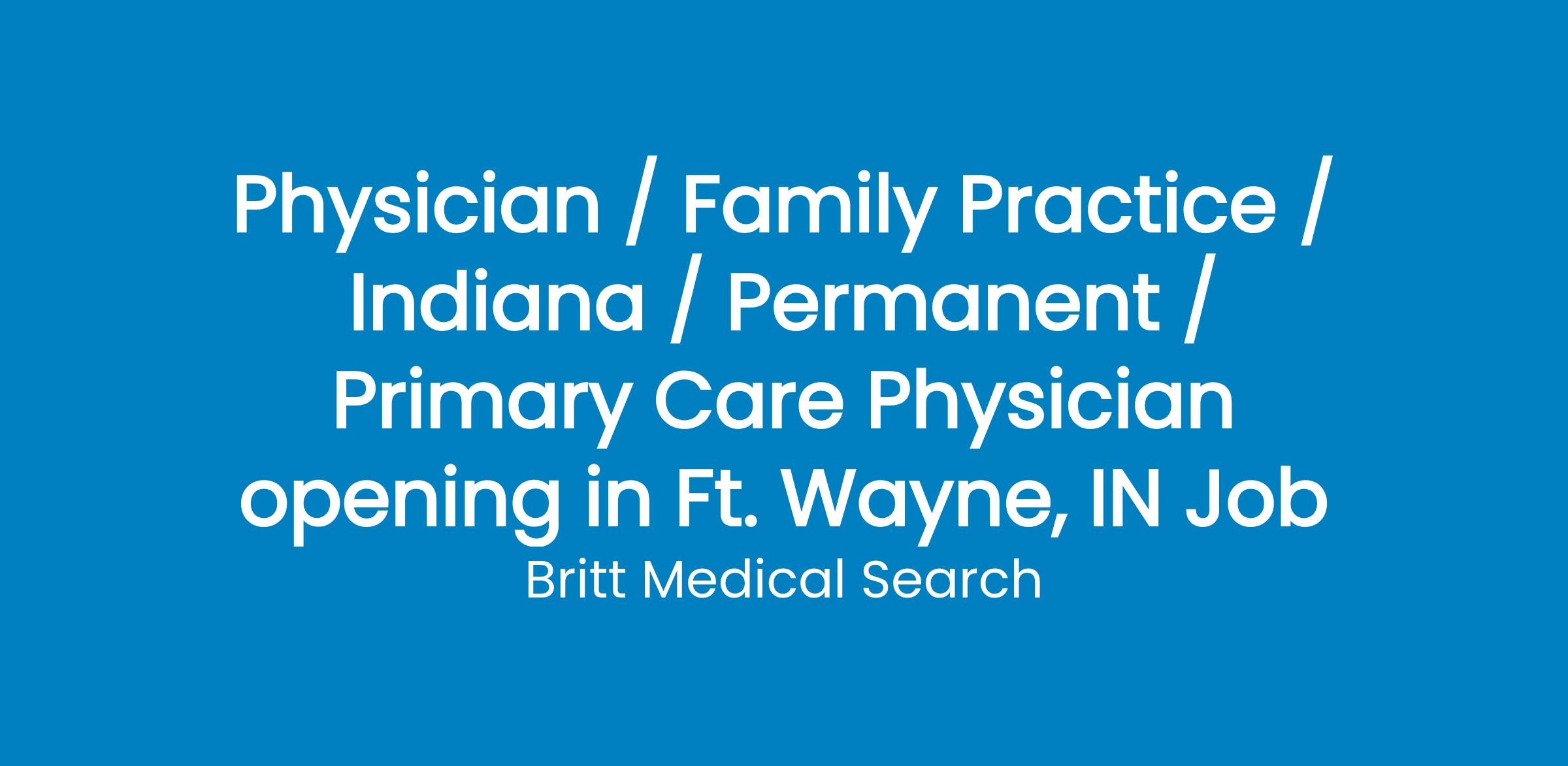 Physician / Family Practice / Indiana / Permanent / Primary Care Physician opening in Ft. Wayne, IN Job