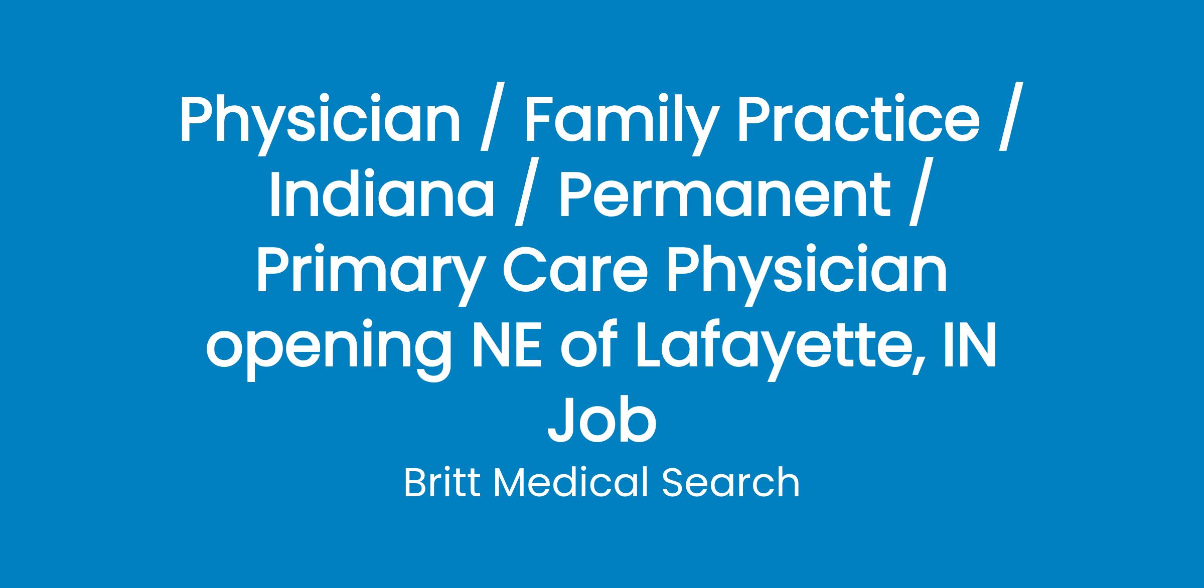 BC/BE Primary Care Physician to join their team northeast of Lafayette, Indiana.