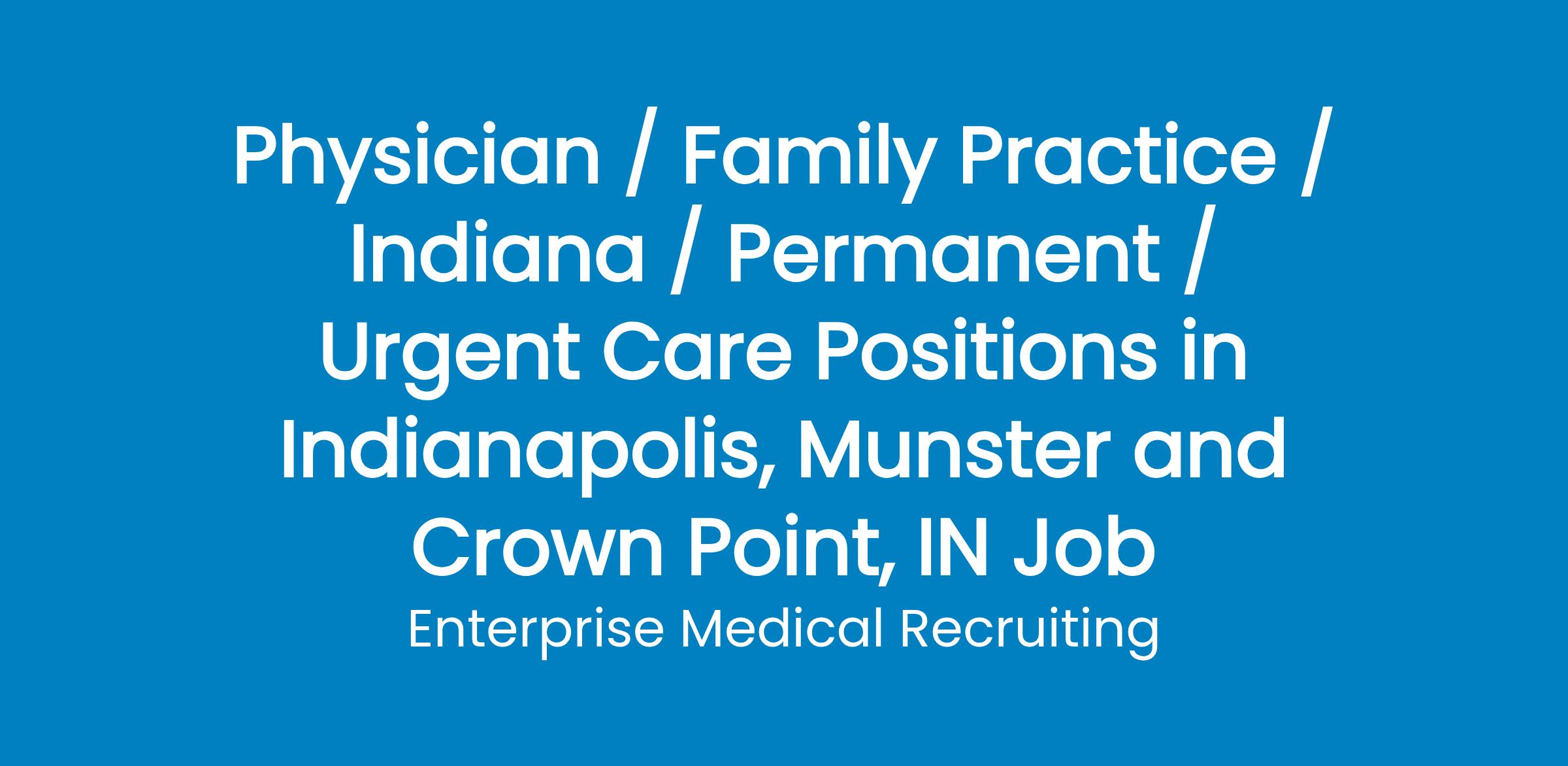 Seeking a full-time Board Certified/Board Eligible physician who will practice quality medicine, is friendly and caring and will provide excellent patient care to join this group in Indianapolis, Indiana.