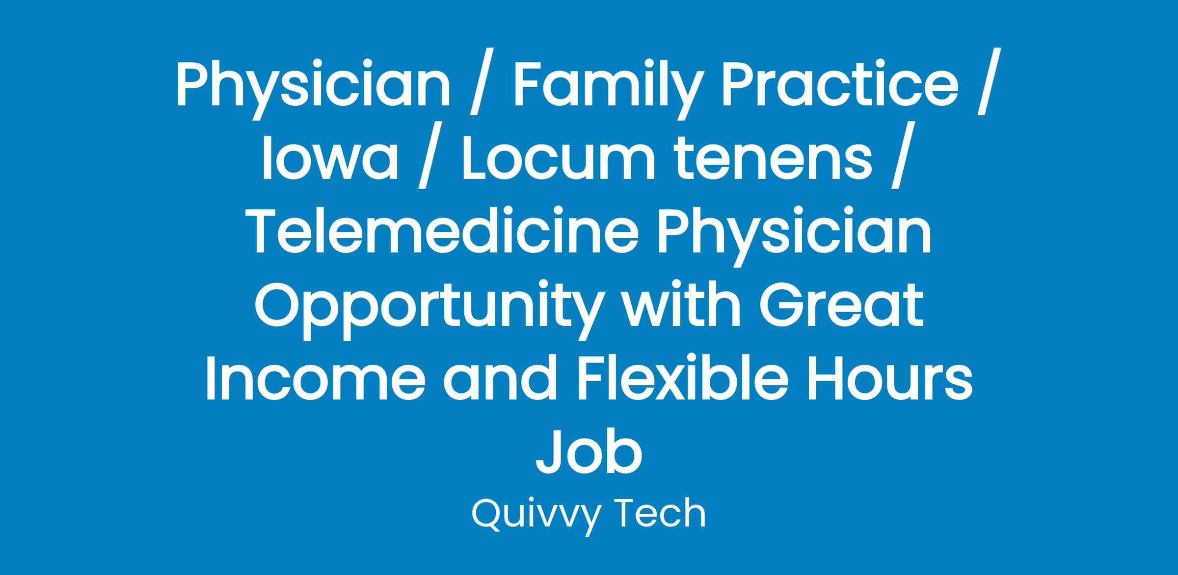Physician / Family Practice / Iowa / Locum tenens / Telemedicine Physician Opportunity with Great Income and Flexible Hours Job
