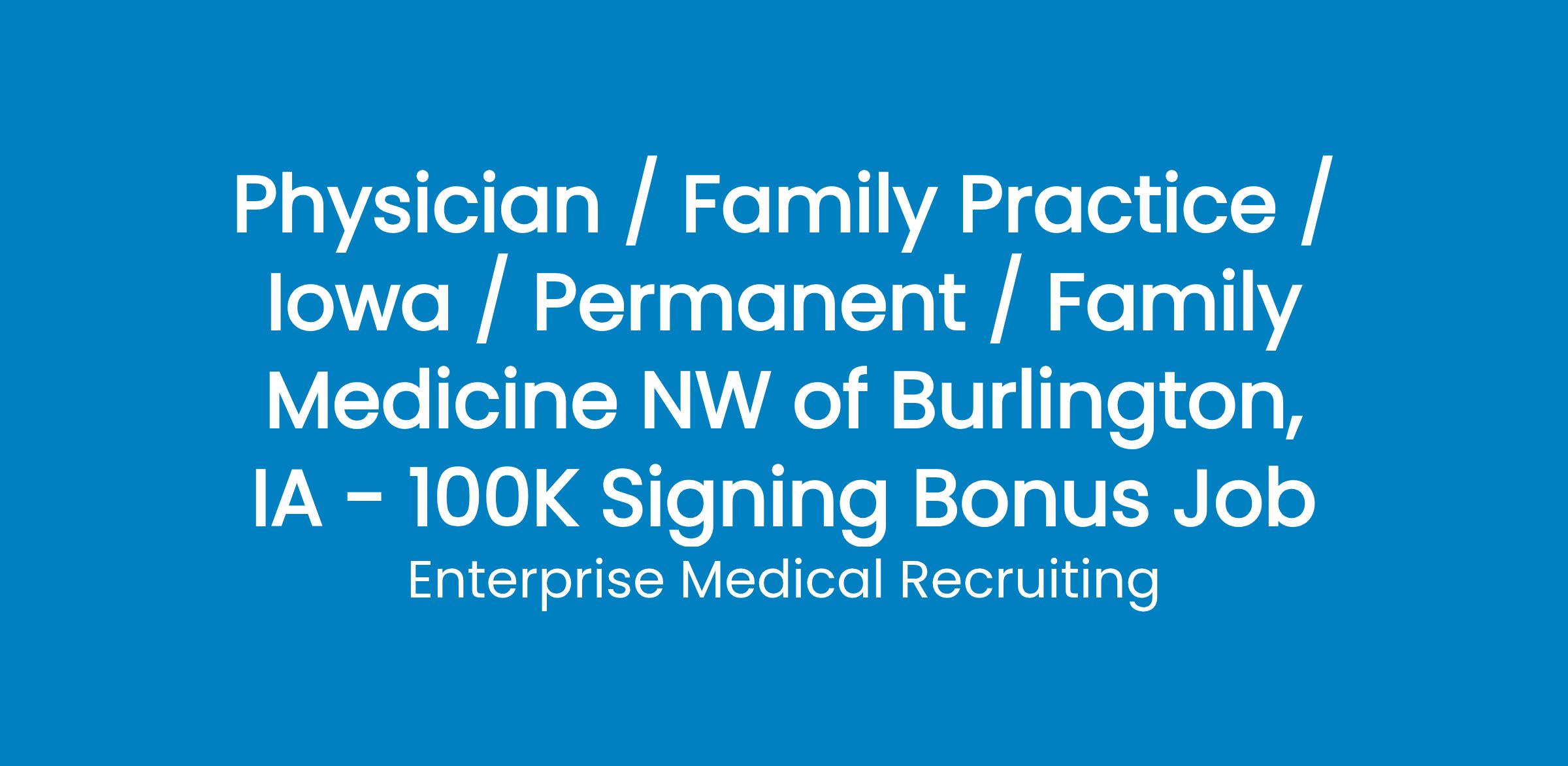 An outpatient Family Medicine position just outside Iowa City, Iowa in a Critical Access Hospital that is part of a large Regional Health System.