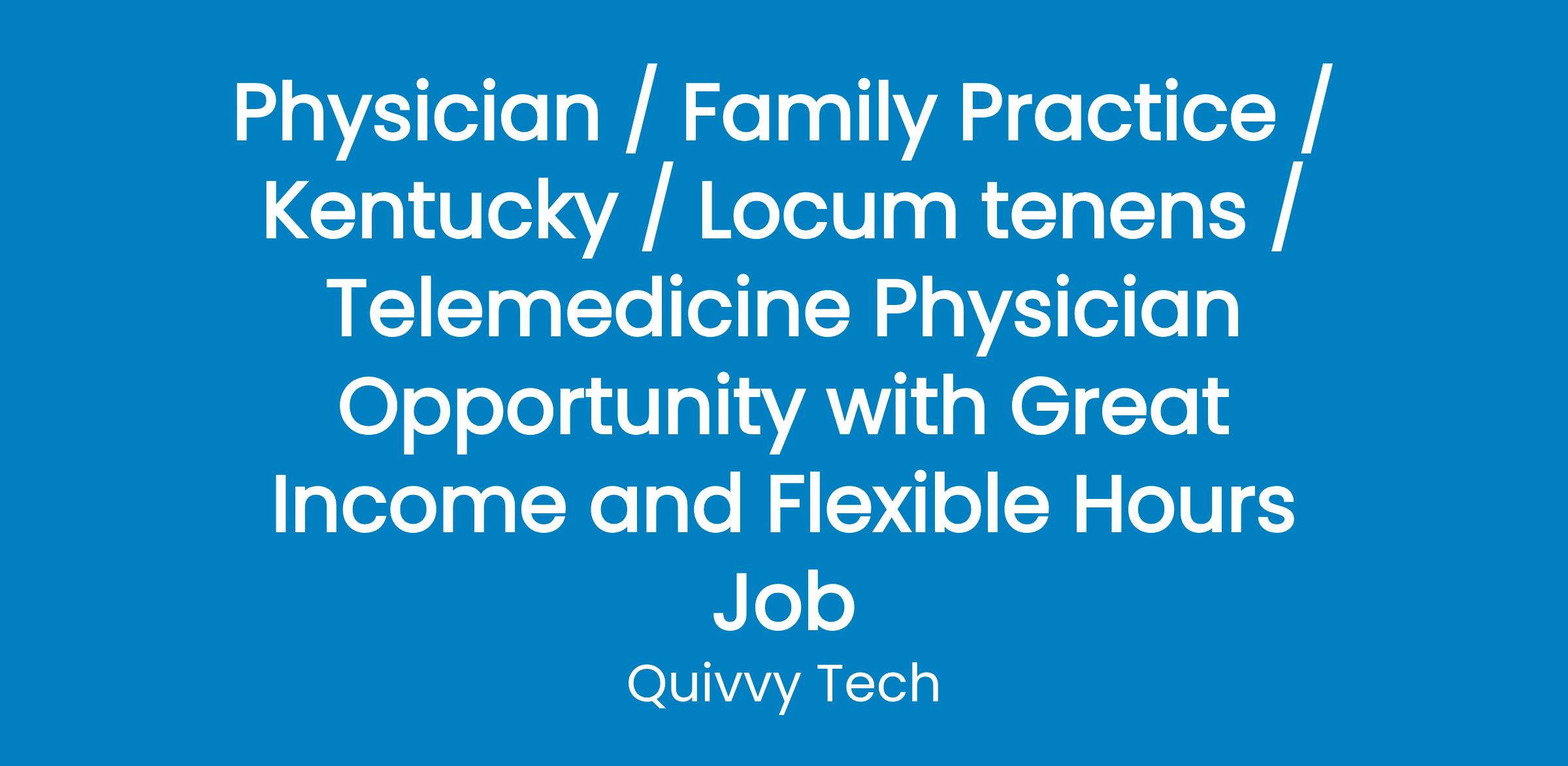 Physician / Family Practice / Kentucky / Locum tenens / Telemedicine Physician Opportunity with Great Income and Flexible Hours Job