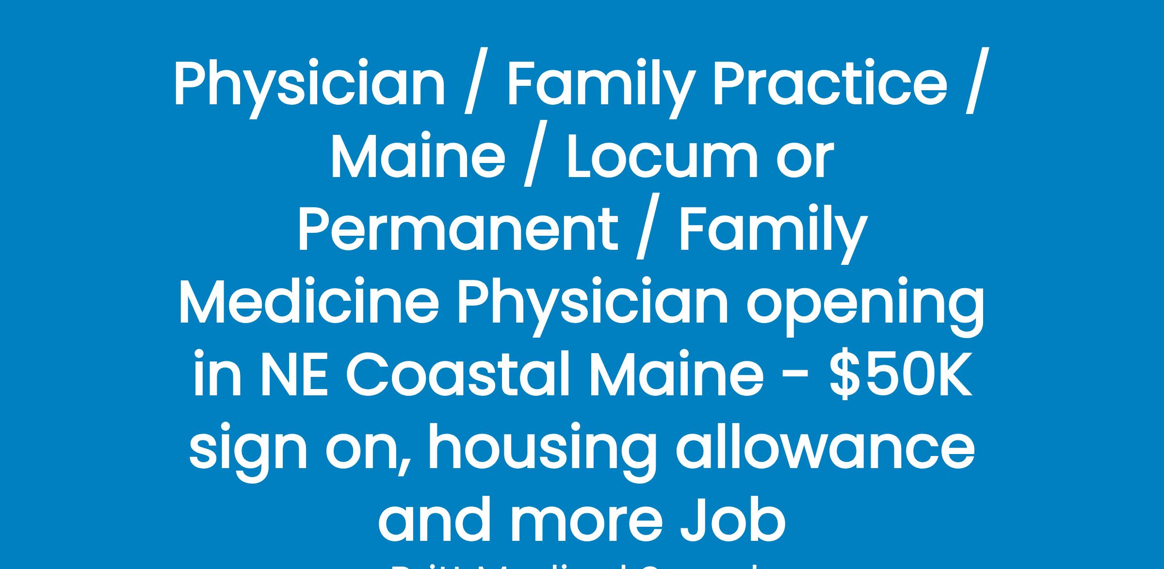 Seeking BE/BC Family Medicine provider to join team in NE coastal Maine.