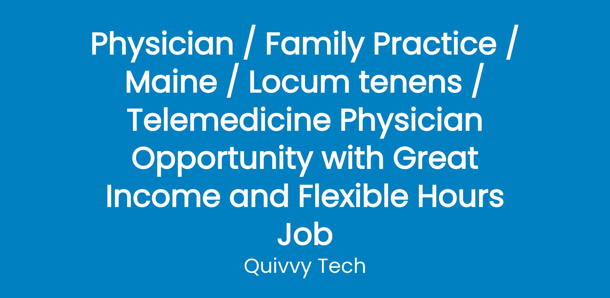Physician / Family Practice / Maine / Locum tenens / Telemedicine Physician Opportunity with Great Income and Flexible Hours Job