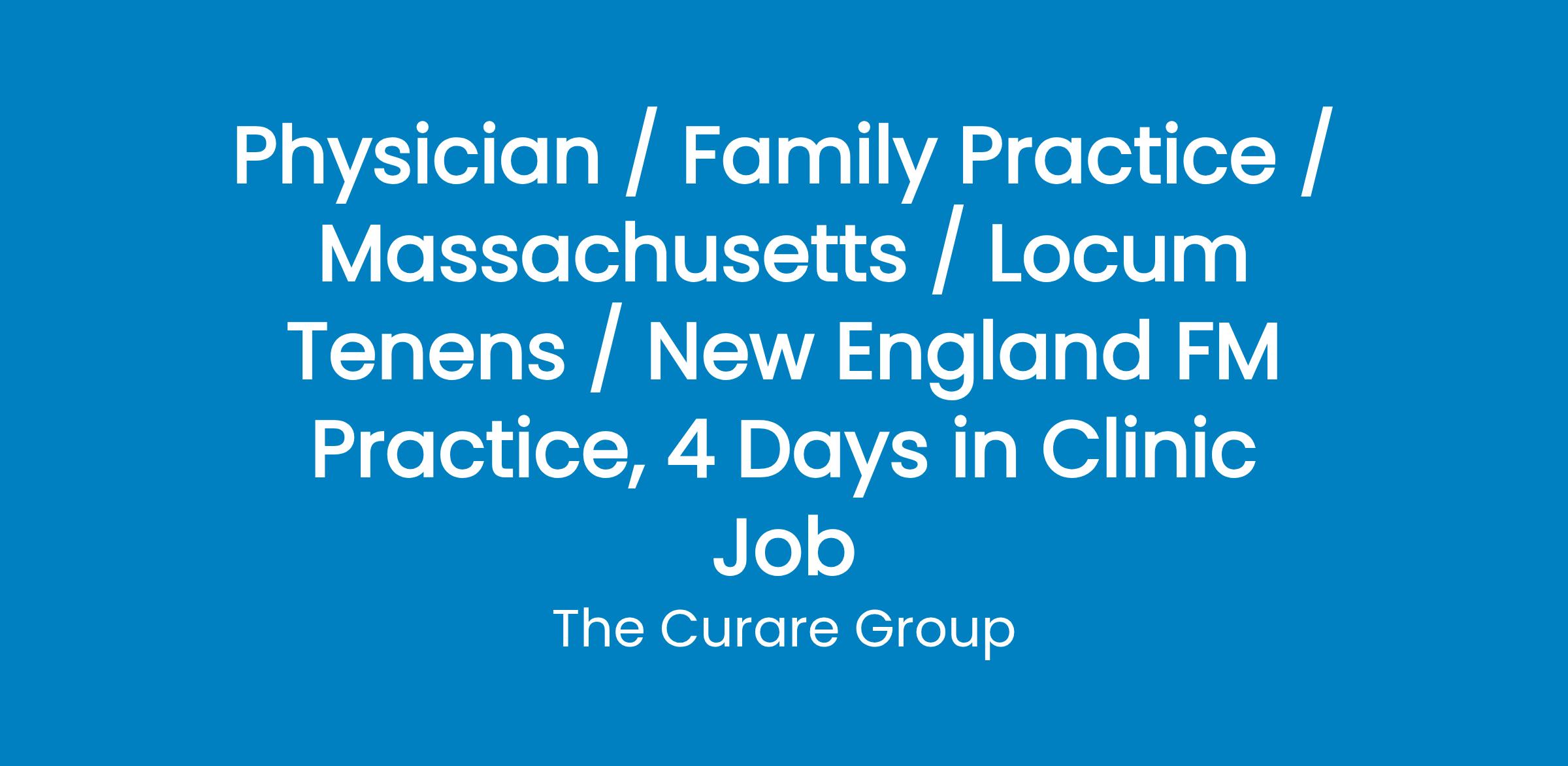 Enjoy a great work/life balance in this Boston area Primary Care opportunity. Located less than 30 minutes from downtown Boston, this position feature a 4 day clinical work week and 1 day a week for admin time. You would be joining a team of 8 other Primary Care providers and would see a mixed age patient panel in an outpatient setting. A competitive compensation package, full benefits, and a focus on quality of care are just a few of the many perks this position has to offer.Full-time, Hospital Employed. Outpatient Only. M-F Schedule - 4 days in clinic and 1 day of admin. Competitive Base Salary. Full Benefits Package. Practice currently features 8 providers (5 MD's, 3 NP's). Epic EMR. Mixed Age Patient Panel. Located less than 30 minutes from dowtown Boston. Must be Board Eligible/Board Certified in Family Medicine or Internal Medicine.