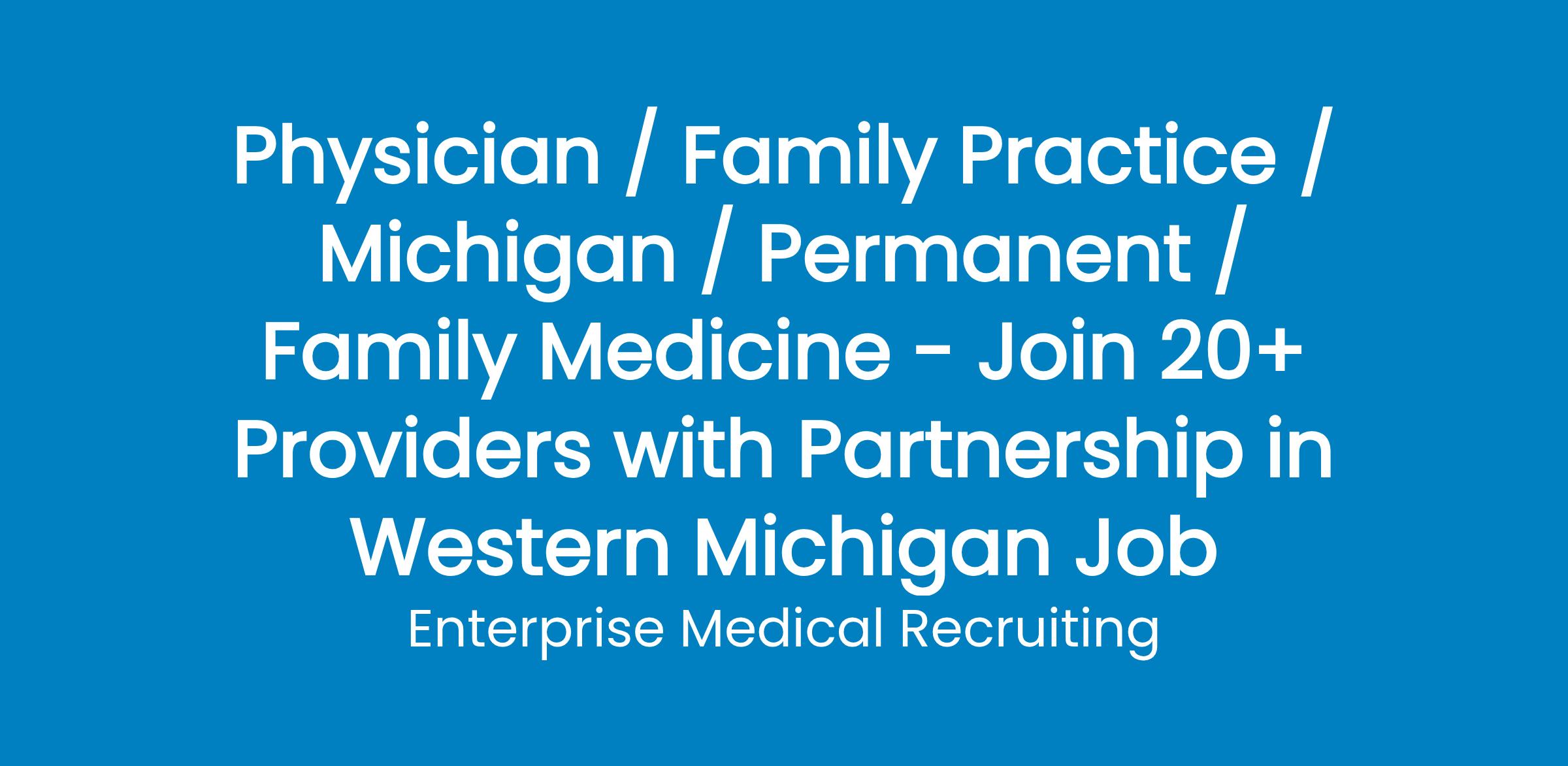 Enterprise Medical is representing a highly respected primary group with over 20 providers in Grand Rapids, Michigan. The group is seeking Family Medicine providers to replace future retiring physicians.