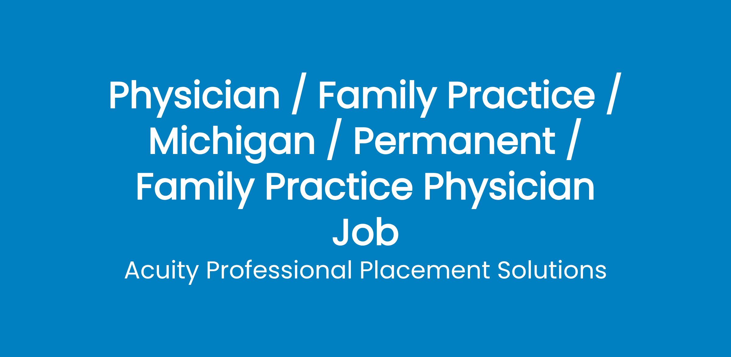 The post Family Practice Physician appeared first on Acuity Healthcare .