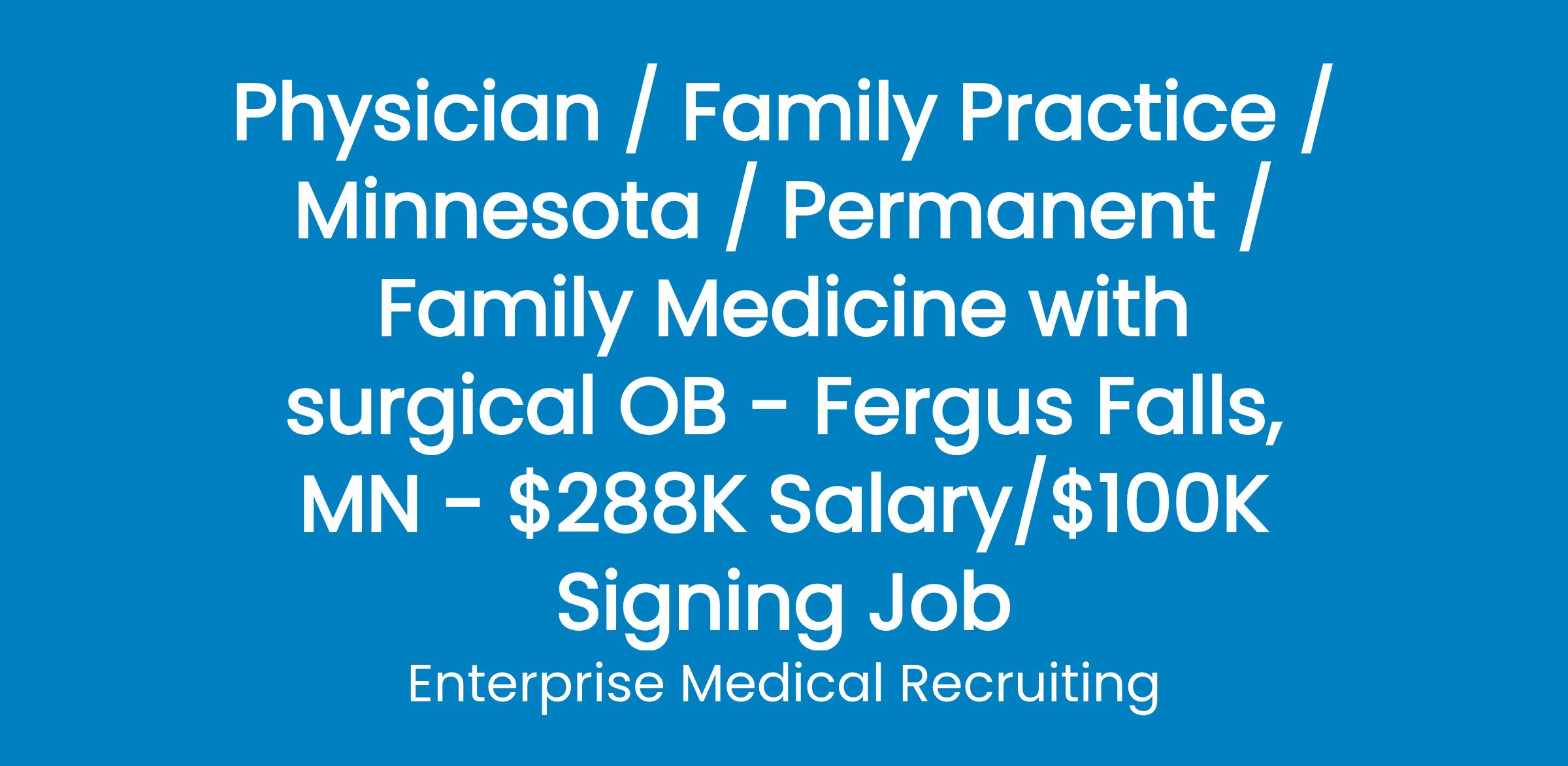 We are assisting an independent, physician-led, multi-specialty practice seeking a Family Medicine Physician with OB & C-sections. This is an employed position within a large non-profit organization serving west-central Minnesota and eastern North Dakota.