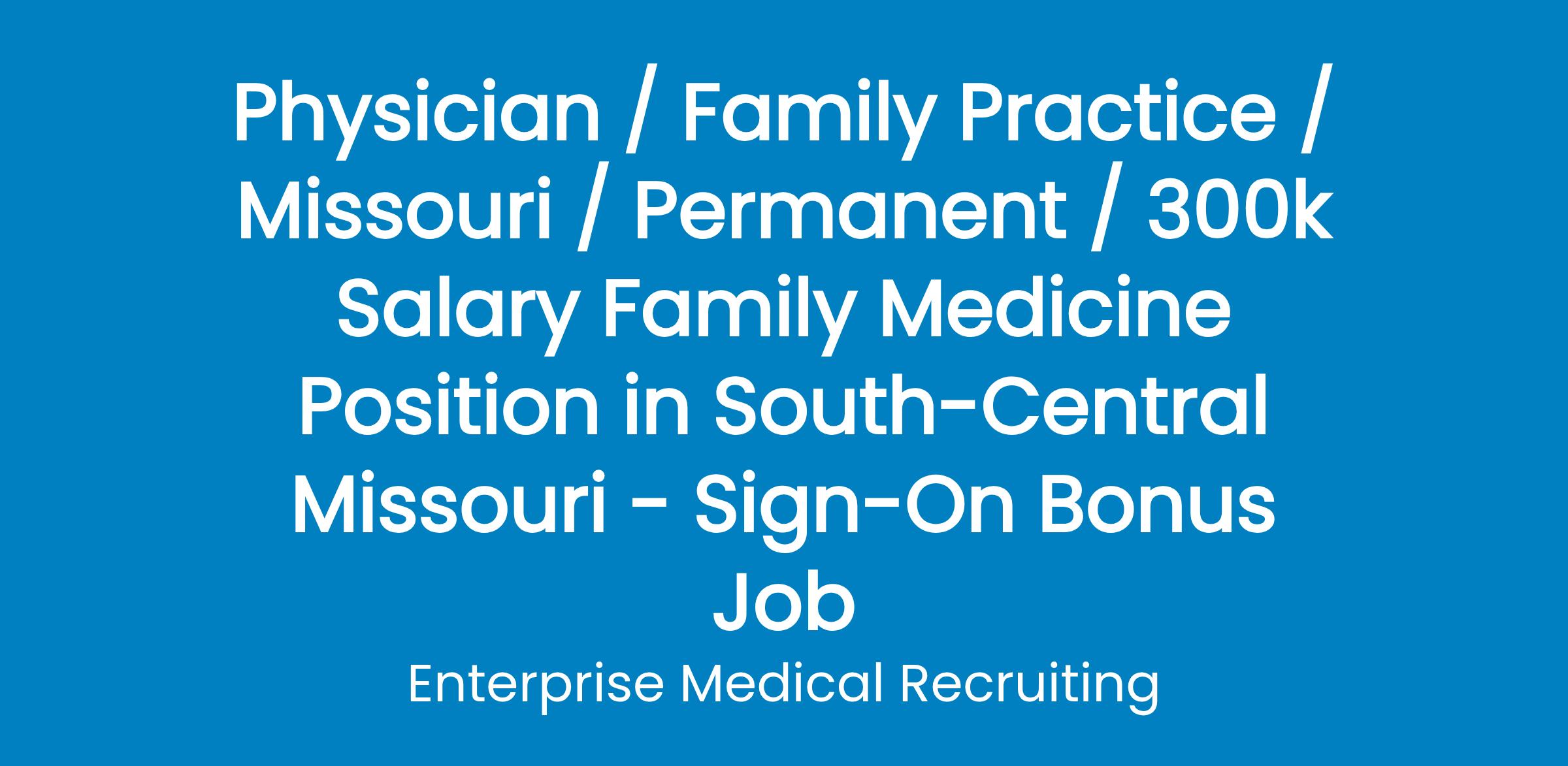 A quality FQHC in south-central Missouri is looking for a Family Medicine physician to join their team and make a difference in the community.