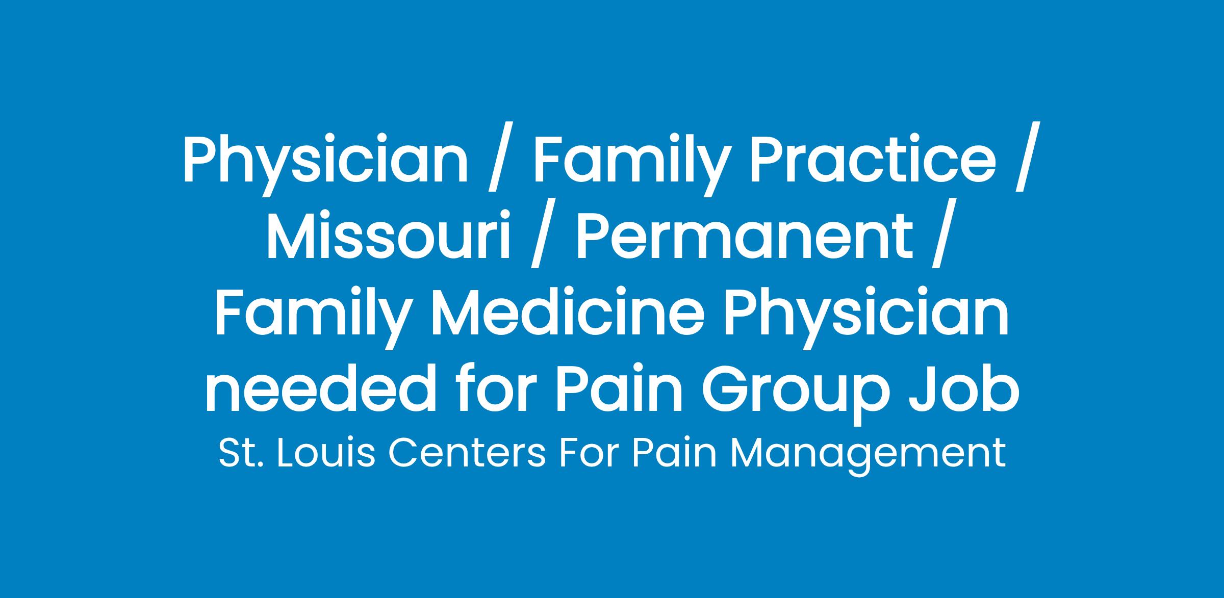 We are seeking a creative Family Medicine physician willing to fully participate in multi-modal treatment of pain.