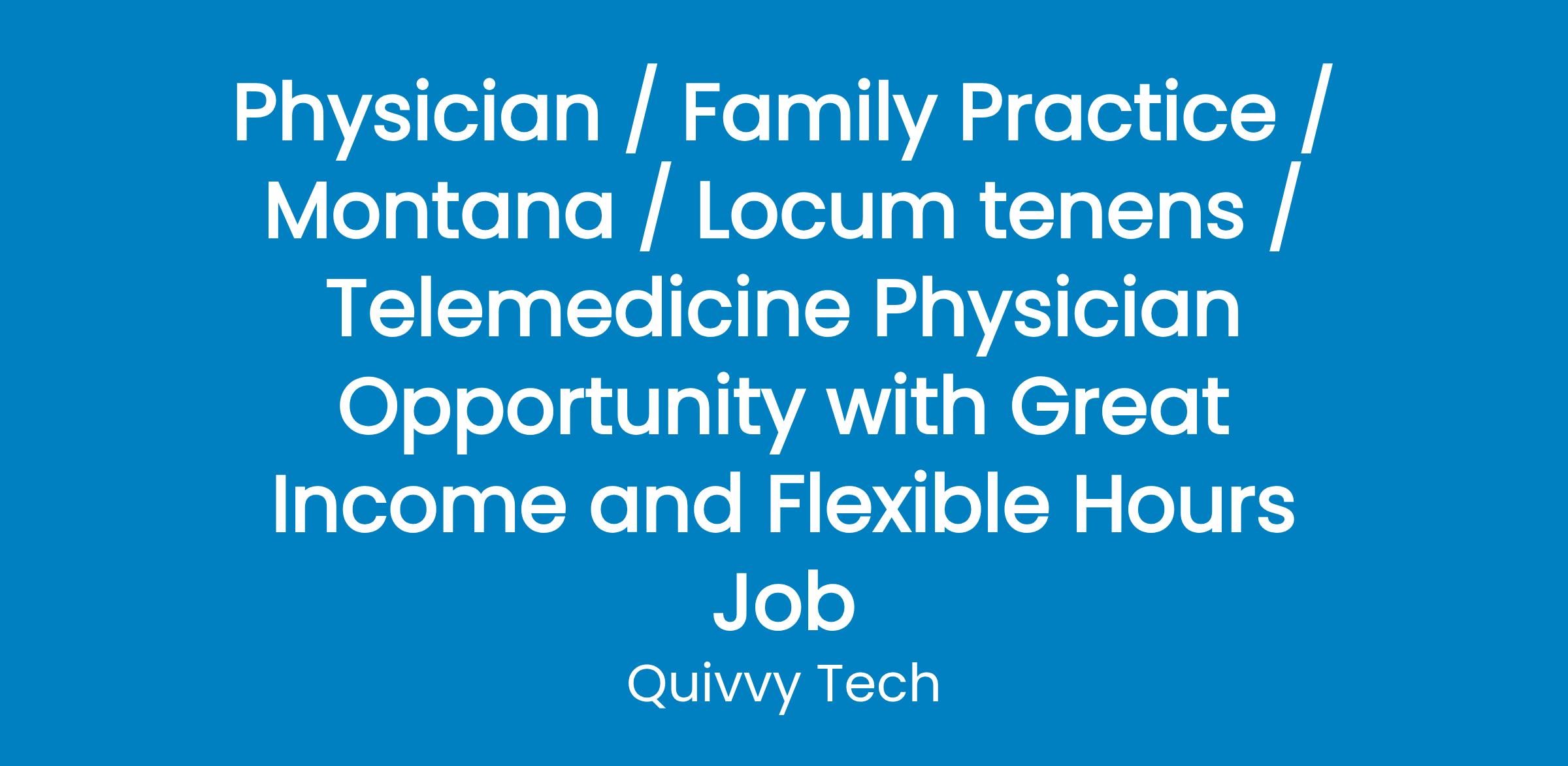 Physician / Family Practice / Montana / Locum tenens / Telemedicine Physician Opportunity with Great Income and Flexible Hours Job