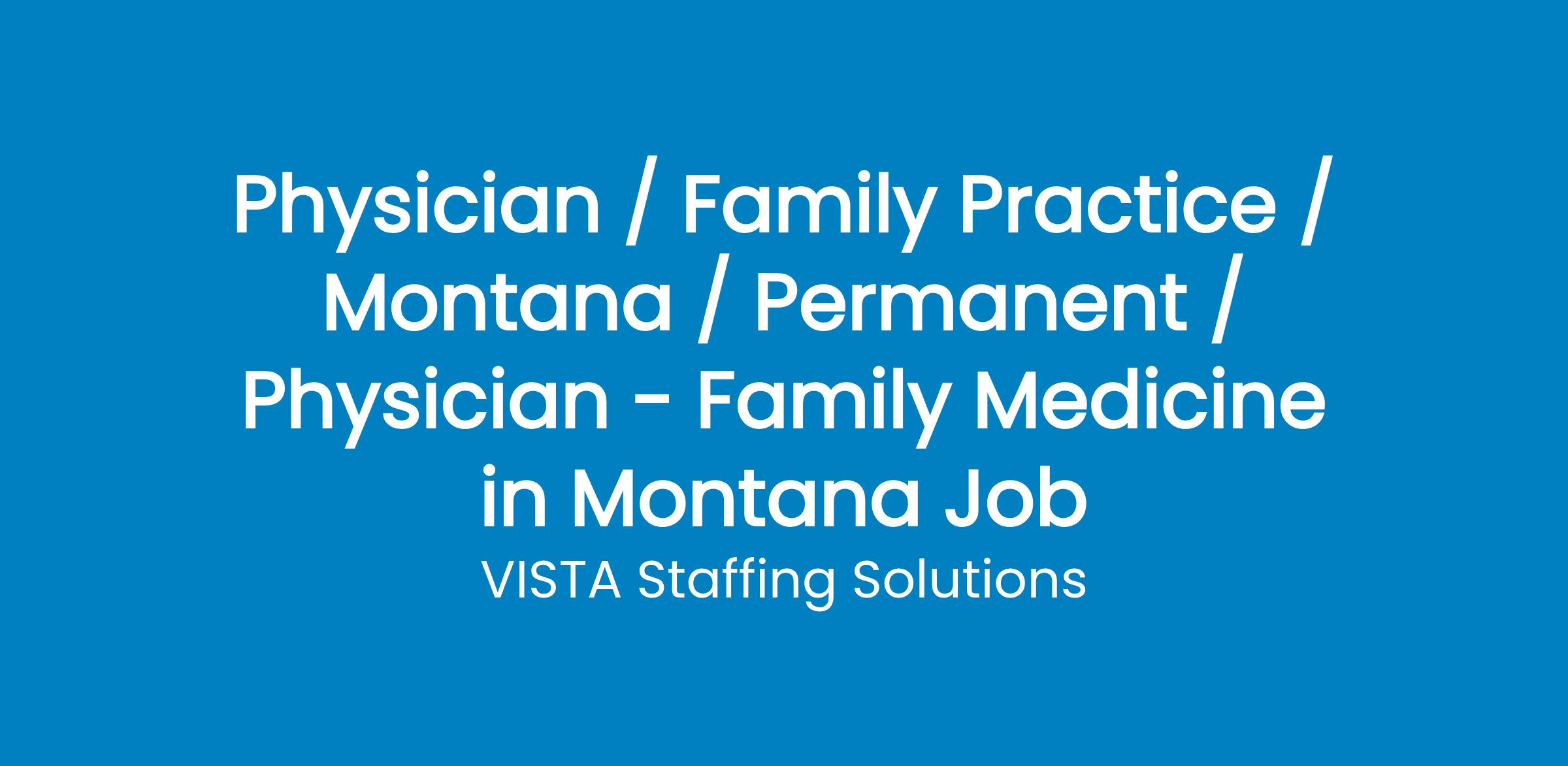 Are you a Family Medicine Physician searching for your next exciting locum tenens opportunity? This position with one of VISTA's healthcare partners in Montana might just be the opportunity for you!