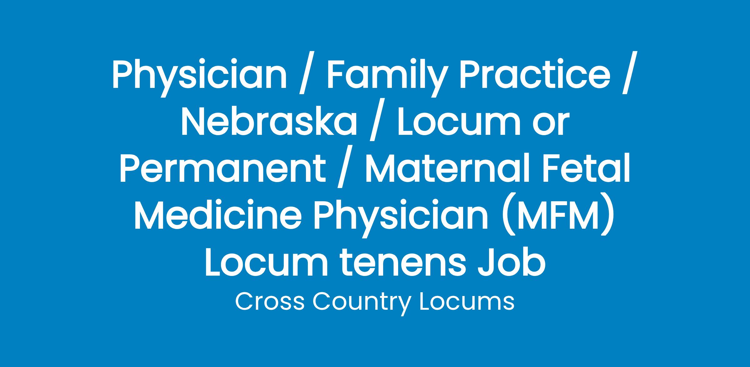 Physician / Family Practice / Nebraska / Locum or Permanent / Maternal Fetal Medicine Physician (MFM) Locum tenens Job