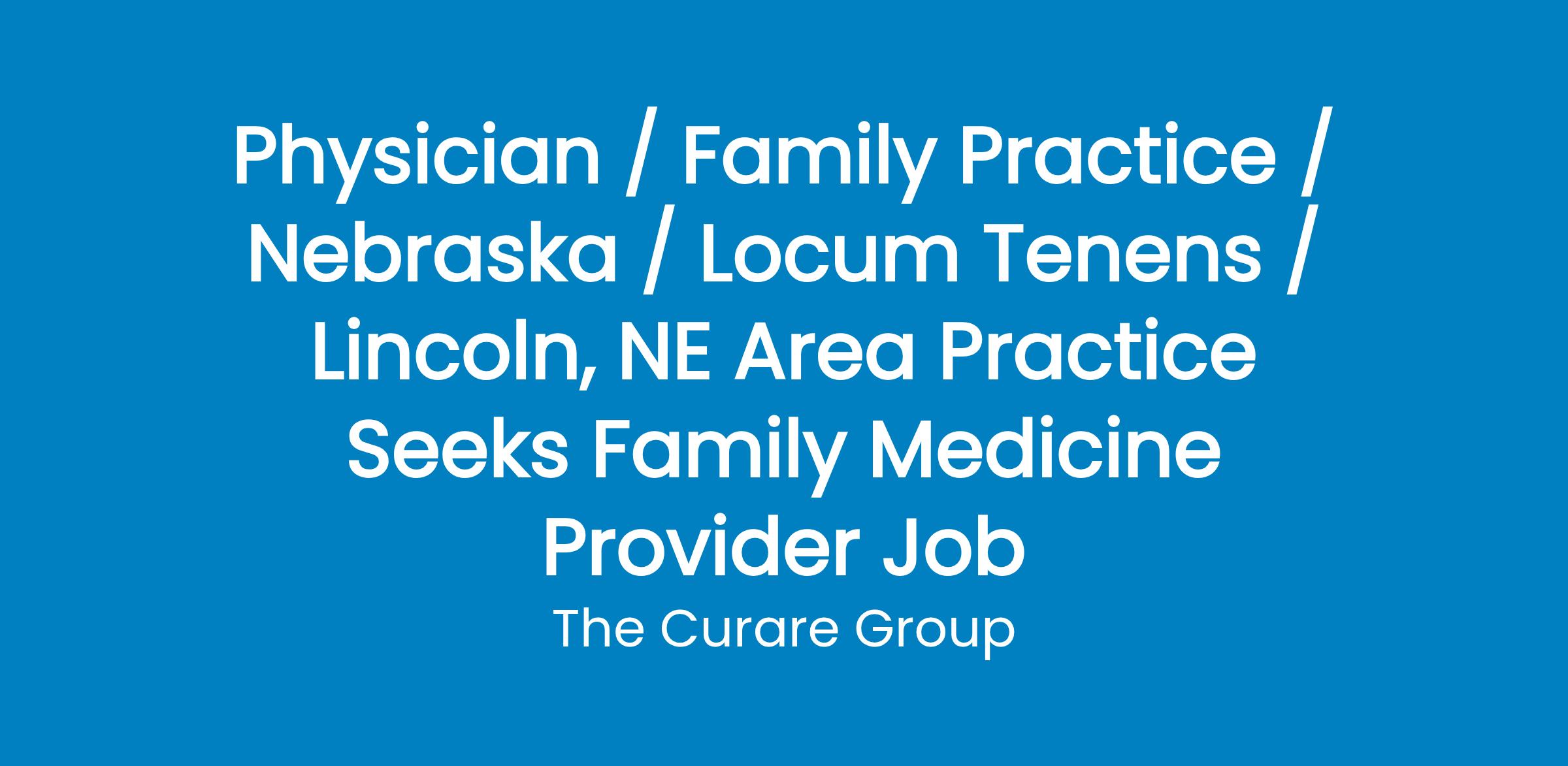 Family Practice physician is needed for either part-time or full-time within an easy driving distance to Omaha and Lincoln, Nebraska. New grads or experienced providers are welcome, and will receive competitive compensation and excellent benefits. Visa candidates also accepted. Appreciate a high quality of life in a beautiful setting along the Platte River, with endless outdoor recreation opportunities. Employee, Outpatient only. Productivity bonus. Regional airport for swift access to large metros . Low crime rate and low cost of living with affordable housing. Health insurance, sick time, paid vacation, paid CEU, paid holidays, liability coverage. Activity options in abundance, from hunting and fishing to golfing at four local courses. Full time and Part time options available .