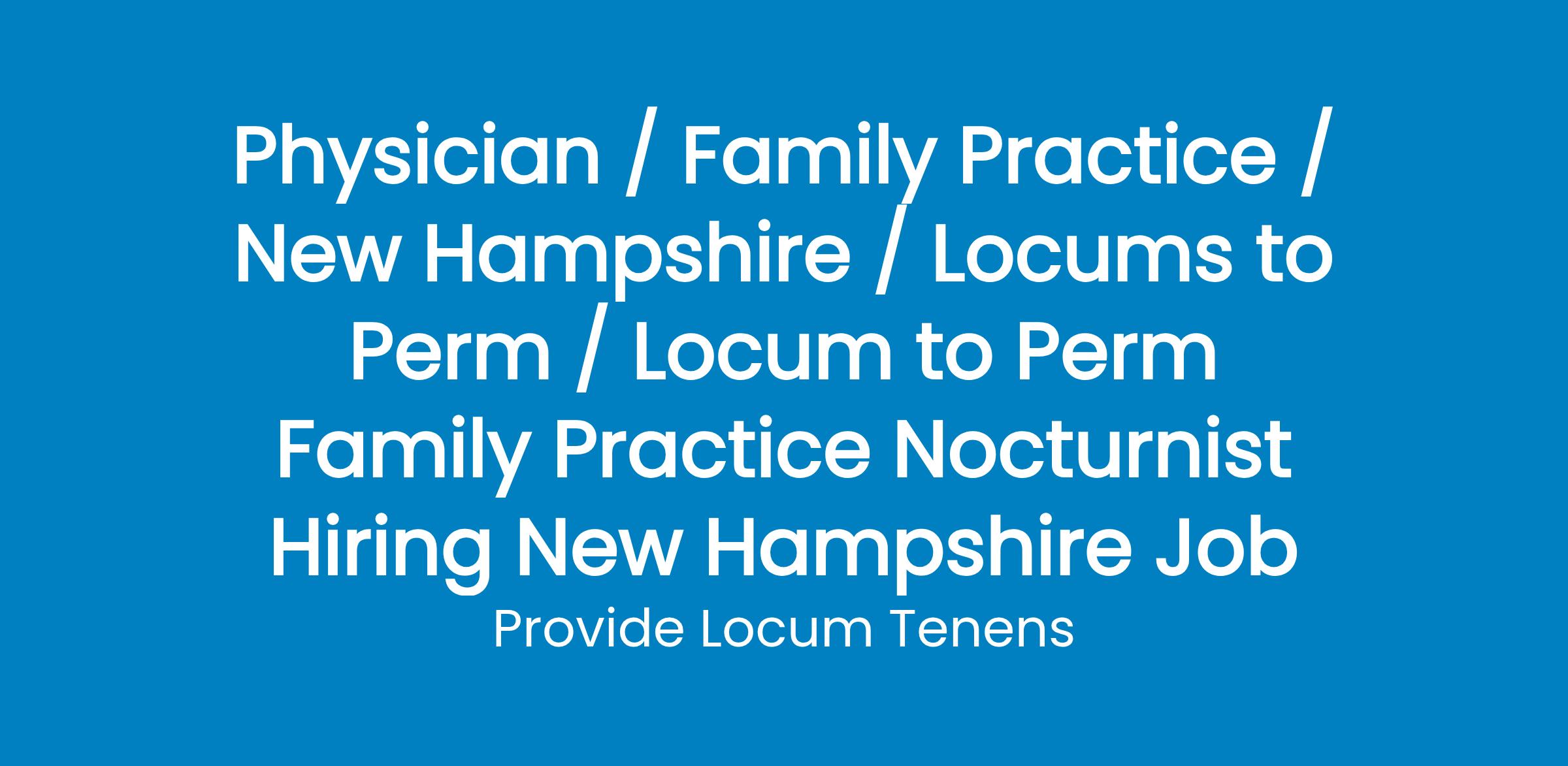 A ProvideLT client has an urgent opening for a Board-Certified Board Certified Nocturnist Family Practice to provide locums to perm coverage. Assignment is 7 days in April, 2018 with schedule 7pm - 7am. The facility is a 25- bed critical access hospital with average patients seen per day shift up to 20-25 and average admissions of 10-15 per night. Solo Coverage with full hospital support. Hospitalists do geographic rounding. Provider must be willing to see all ages and is proficient with central lines, intubation and codes. Must have active NH license and DEA. Great location and excellent pay!For more inquiries regarding this position call ProvideLT at Provide Locum Tenens is a physician-focused healthcare staffing firm that boasts over 30 years of experience in the healthcare industry and an A-Team of seasoned recruiters and client representatives with a relentless focus in finding the perfect opportunity for each provider and the perfect provider for each client.ProvideLT is one of the fastest growing Locum Tenens staffing firms in the industry with an increasingly large client network nationwide and opportunities in all 50 states catering to providers in over 70 specialties.Visit for more information for more information