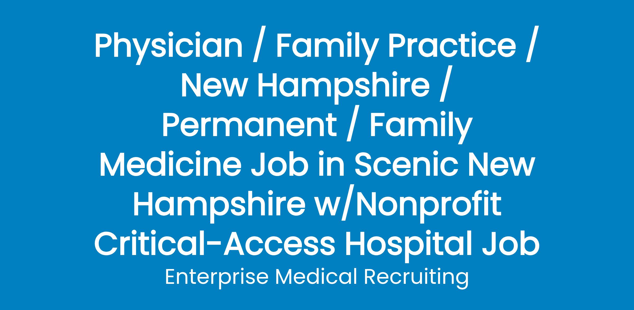 A nonprofit critical-access hospital in the scenic Lakes Region of New Hampshire is adding a Family Medicine physician. We provide local acute care and emergency services and are part of a larger health system with three hospitals.