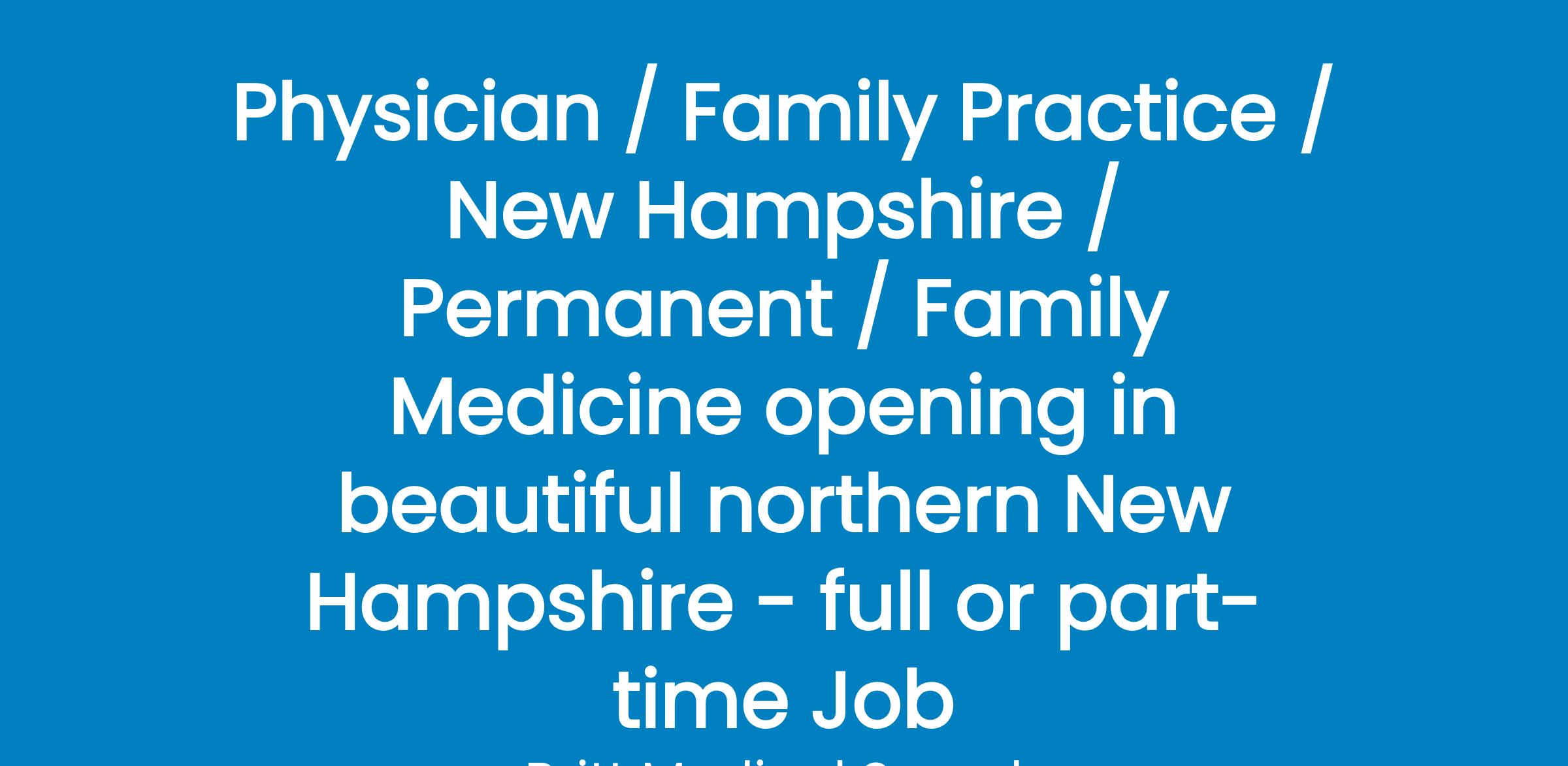 Medical Center is seeking General Internists and Family Practitioners to join the Primary Care Team for part-time and full-time opportunities in Northern NH.