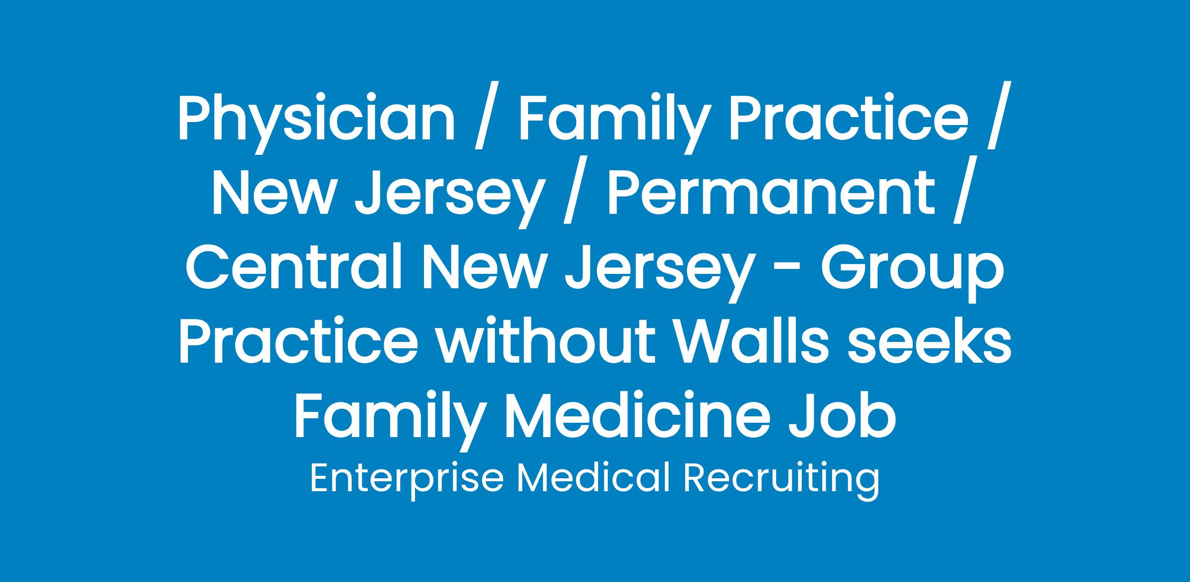 Join a group practice without walls with 40 physicians and 6 offices in Middletown, New Jersey area. The group is currently seeking Family Medicine physicians to join them.