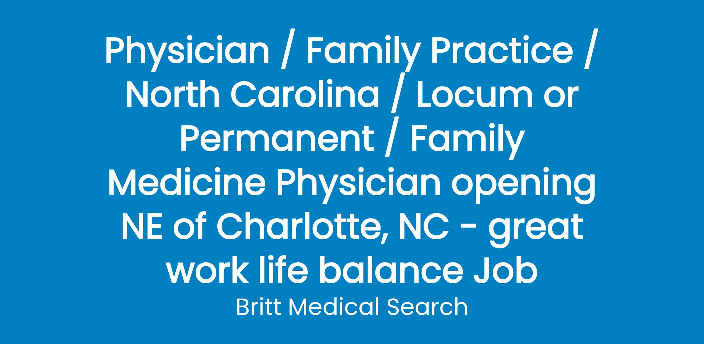 Seeking BE/BC Family Medicine Physician for fantastic opening just NE of Charlotte, NC with a rapidly growing network of more than 60 healthcare providers, 200 staff, and sites across the Carolinas. This location offers a wide range of primary care services for those 16 years old and older from our talented and experienced team