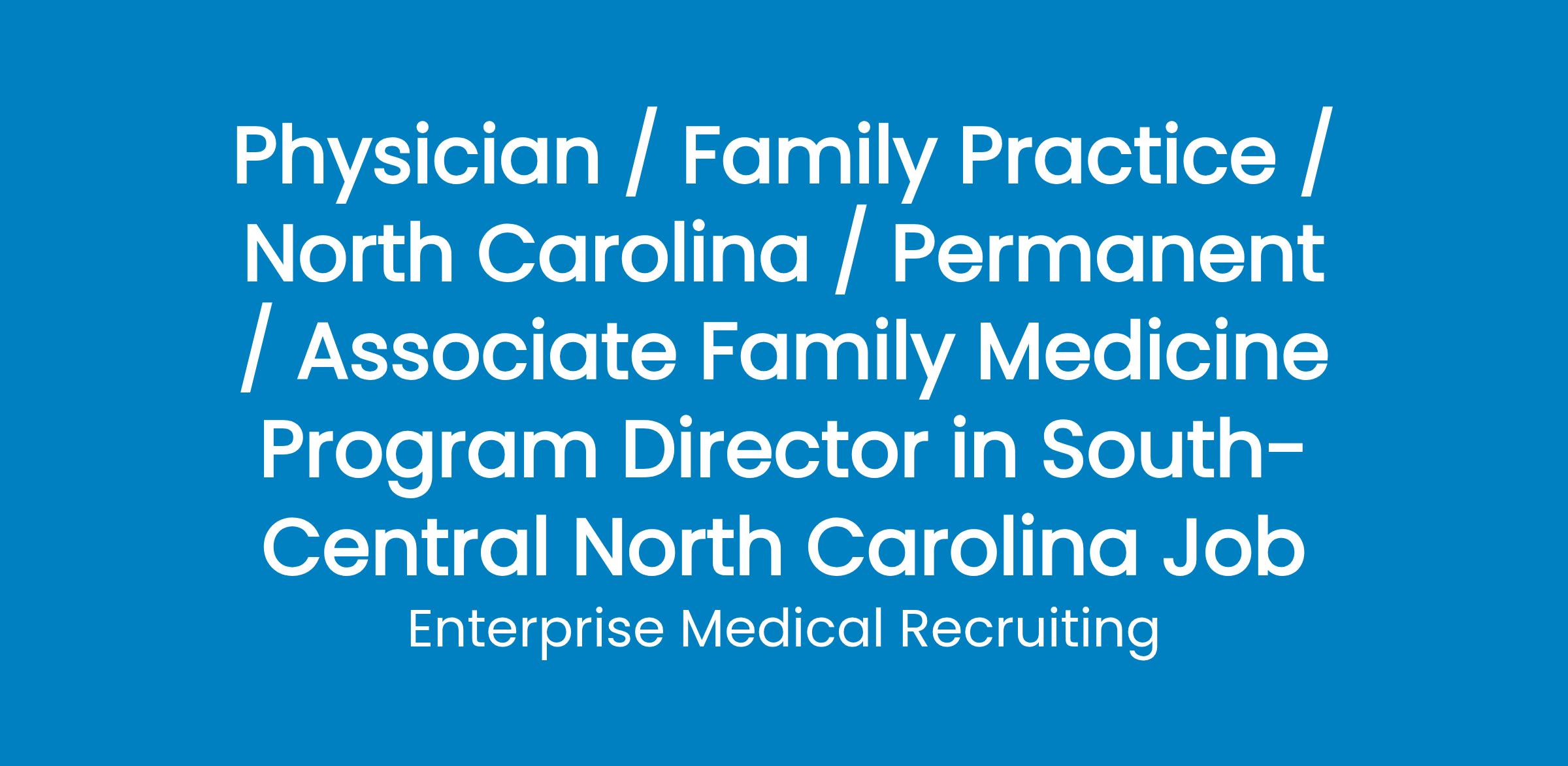 Seeking a Qualified, Board-Certified Family Medicine Physician for a hospital-owned Associate Program Director position in South-Central North Carolina
