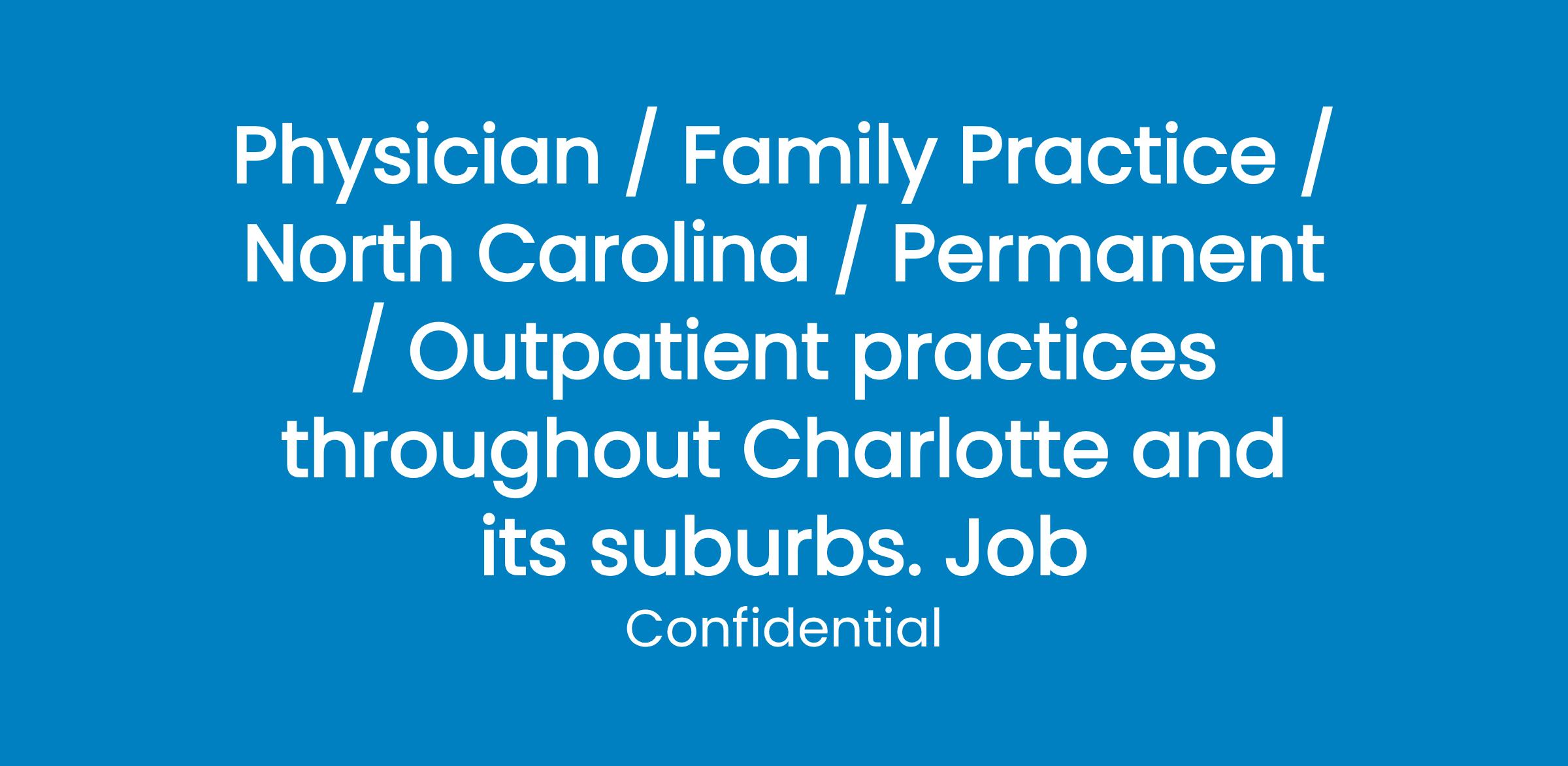 Highly sought-after suburbs of Charlotte offers lake-front living, upscale shopping and restaurants, professional sports teams and an international airport. The area is affordable and growing rapidly. These outpatient practices are supported by a large healthcare system providing full support, comprehensive benefits and highly competitive compensation packages.