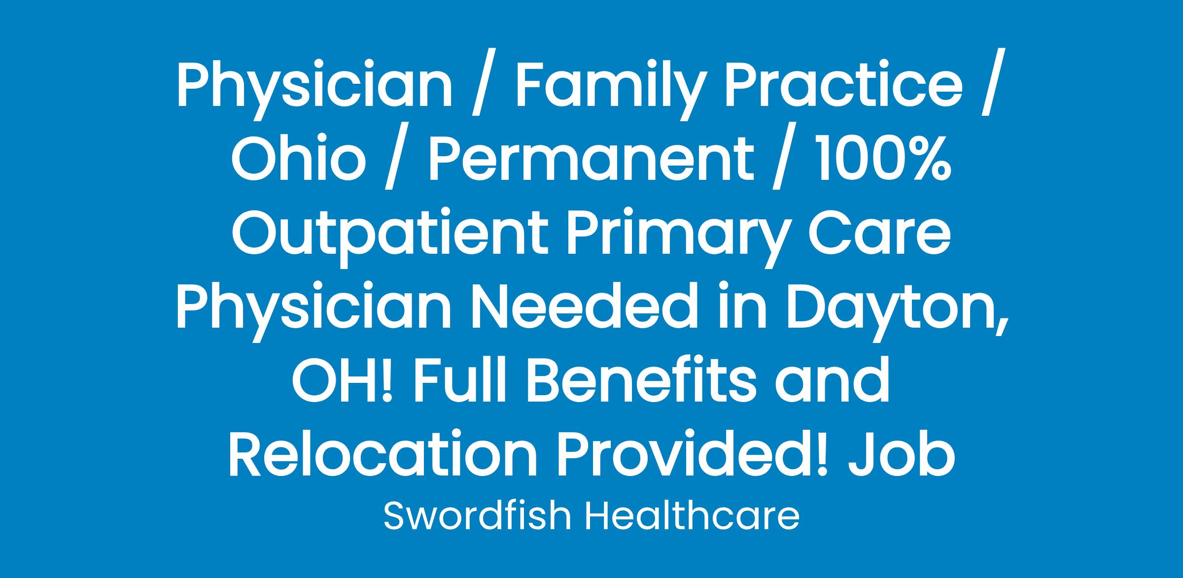 Physician / Family Practice / Ohio / Permanent / 100% Outpatient Primary Care Physician Needed in Dayton, OH! Full Benefits and Relocation Provided! Job