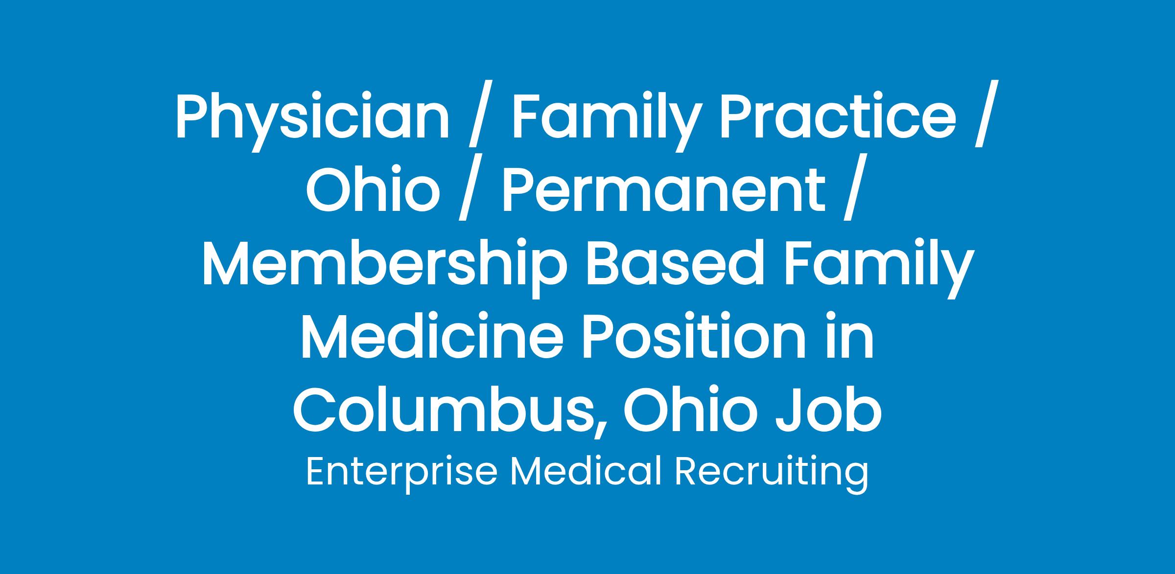 Enterprise Medical is assisting a unique primary care group that delivers the highest-quality care and services in their search for Outpatient Family Medicine physicians to work in their primary care clinics in Columbus, OH. The group has sites that just serve an adult patient base and also has options that serve the whole family.