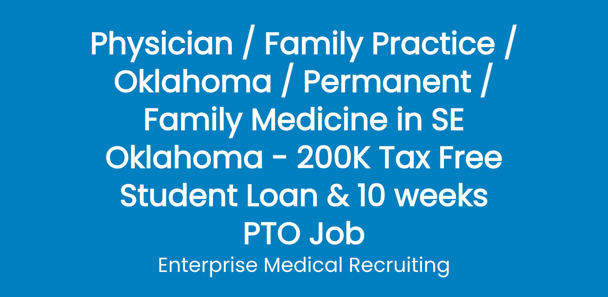 A hospital in southeastern Oklahoma that boast a multispecialty medical staff, they offer an extensive array of medical services, from Emergency Care to Pediatric health to behavioral health. They currently have a need for a Family Medicine physician.