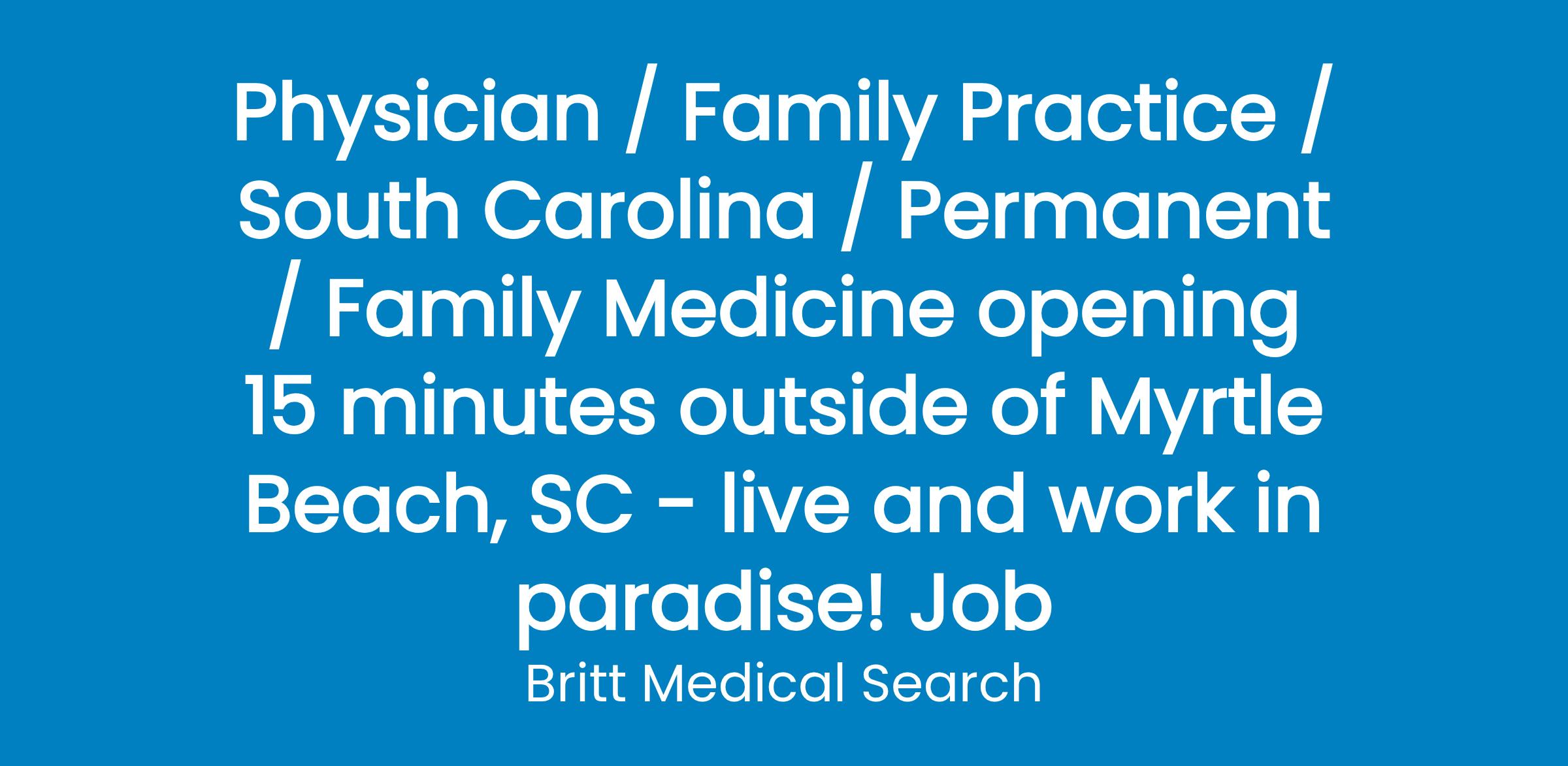 Non-profit medical center serving Horry County & surrounding counties 15 minutes outside of Myrtle Beach, SC is seeking Outpatient Primary Care Physicians to join its team.