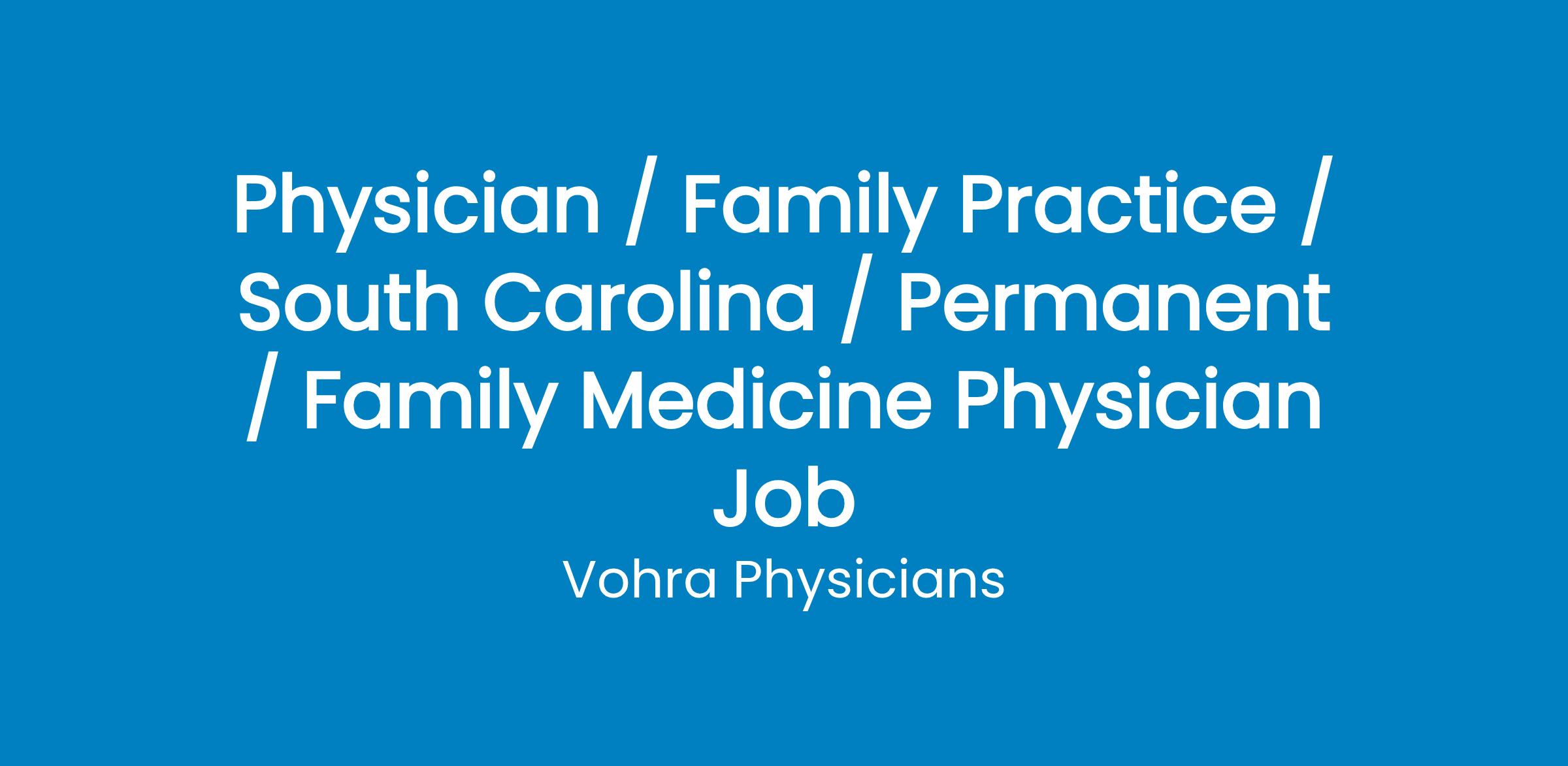 Part-Time Family Medicine Physician Position in Columbia, SC with National Wound Physician Group