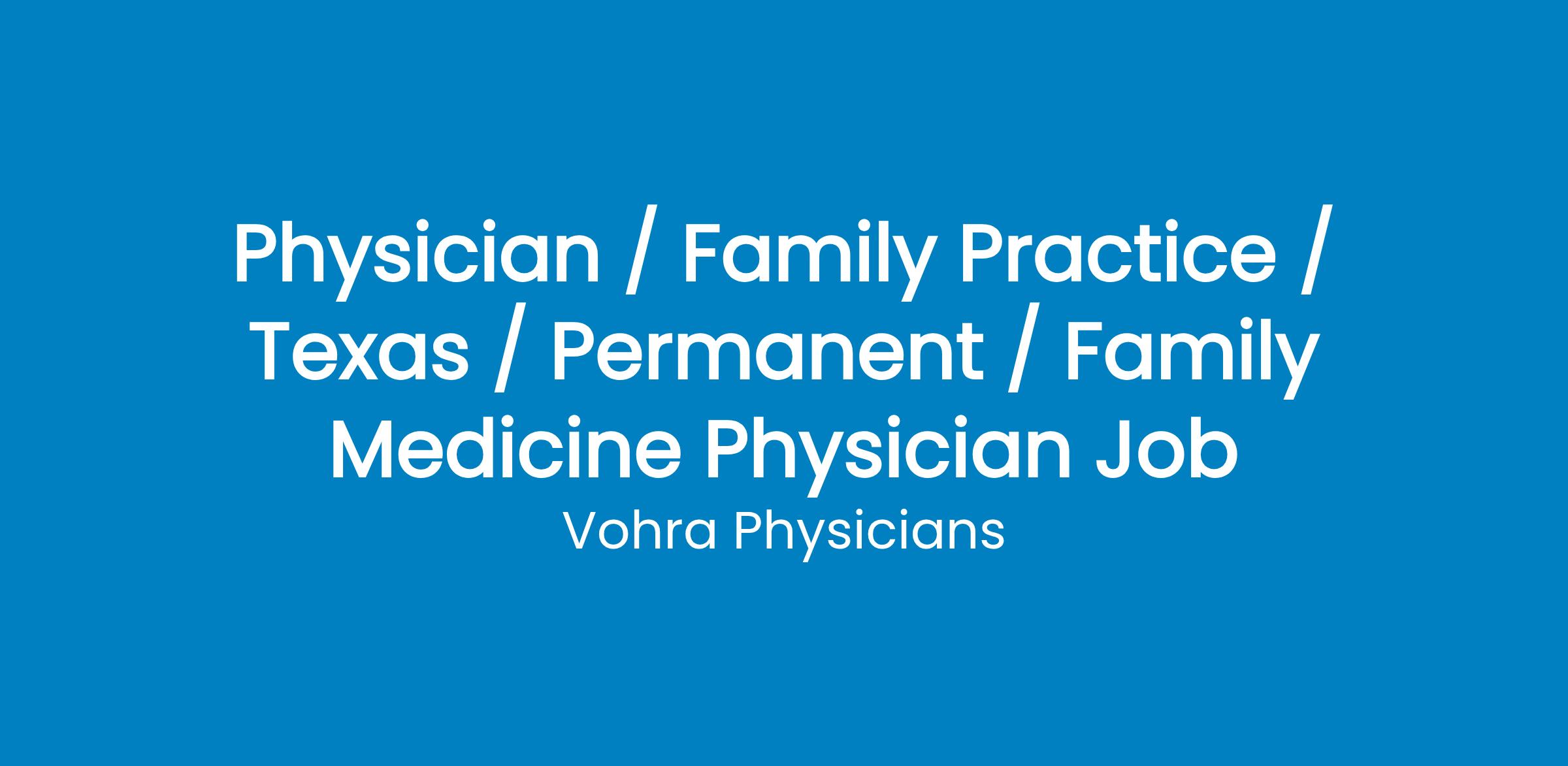 Part-Time Family Medicine Physician Position in Wichita Falls, TX with National Wound Physician Group