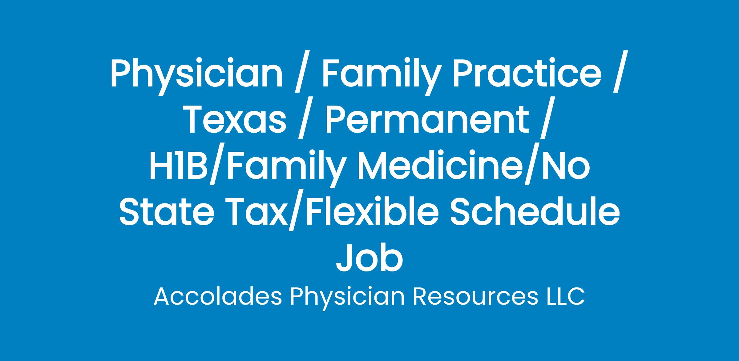 FAMILY MEDICINE PRACTICE OPPORTUNITYCOMMUNITYFrom galleries filled with blossoming local artists, to venues featuring amazing artists, Central Texas Arts and Culture scene continues to grow. One visit and you'll see why we've been named both a Music Friendly City and a Visual Arts Capital of Texas. Outdoor paradise with hunting, fishing, hiking and biking trails for all ages and sizes. Other popular attractions are the River Walk, Festivals, Rodeos and the local Planetarium. Enjoy a wide variety of fine or casual dining options. Air Force Base and 4 year University make up the rest of the city population. Regional Airport with flights on American Airlines.Growing Regional Hospital with over 400 employed providers has evolved over last 20 years from acquisitions & its merger with a successful, established outpatient clinic. Recent expansion includes a new 39 bed ICU and a new Cancer Center. Emergency Medicine volume is 60,000 annual visits. Hospital has 5 da Vinci Robots for Surgery. The newest technology is constantly being added and supported by a solid financial budget. Affiliated with Mayo Clinic. Soon a brand new family medicine residency will be established. Service area has 25 counties.OVERVIEWWork Schedule: Monday through Friday & one afternoon a week off & paid time off.Call shared on a rotating basis with other physiciansThis position is highly flexible.Work-life balance: Emphasis on manageable schedules and supportive environmentROLEComprehensive outpatient care: Diagnose and treat patients across all ages in a clinic setting.Inpatient follow-up: Continue care for patients admitted to hospital when needed.Team collaboration: Work closely with other physicians, nurses, and specialists to ensure coordinated patient care.Preventive medicine: Provide wellness checks, screenings, and chronic disease management.Patient education: Counsel patients and families on health maintenance and treatment plans.PACKAGE1st year salary guaranteedSign on Bonus offeredQuality and production incentivesStipendLoan repaymentHealth, dental & visionRetirementAnnual CME allowanceRelocation allowanceH-1B visas accepted