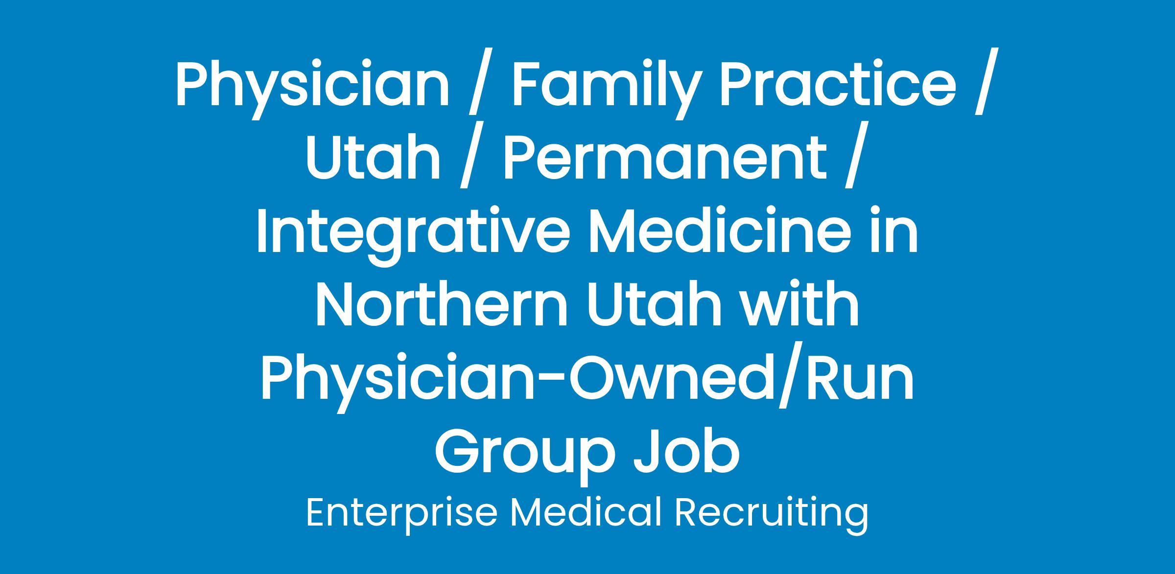 A successful 20+ year-oldoutpatient clinic 30 miles from Salt Lake City, Utah, is hiring an additional Family Medicine physician.