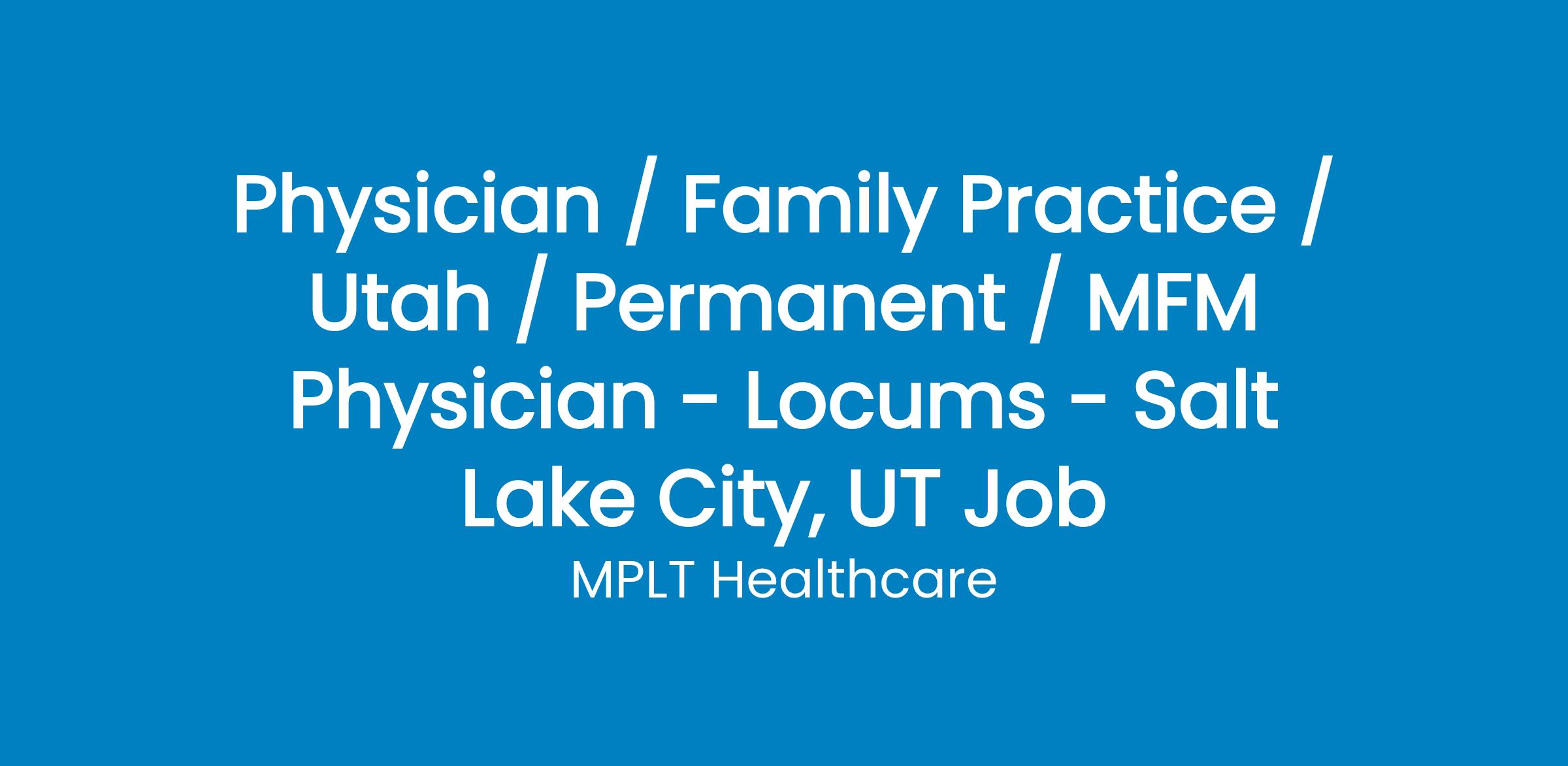 MPLT Healthcare is looking for physicians who Understand the Urgency, Never Give Up, and Have the Courage to Excel in the forever changing medical industry! We have numerous opportunities for an experienced MFM Physician with highly competitive pay rates in Salt Lake City, Utah .