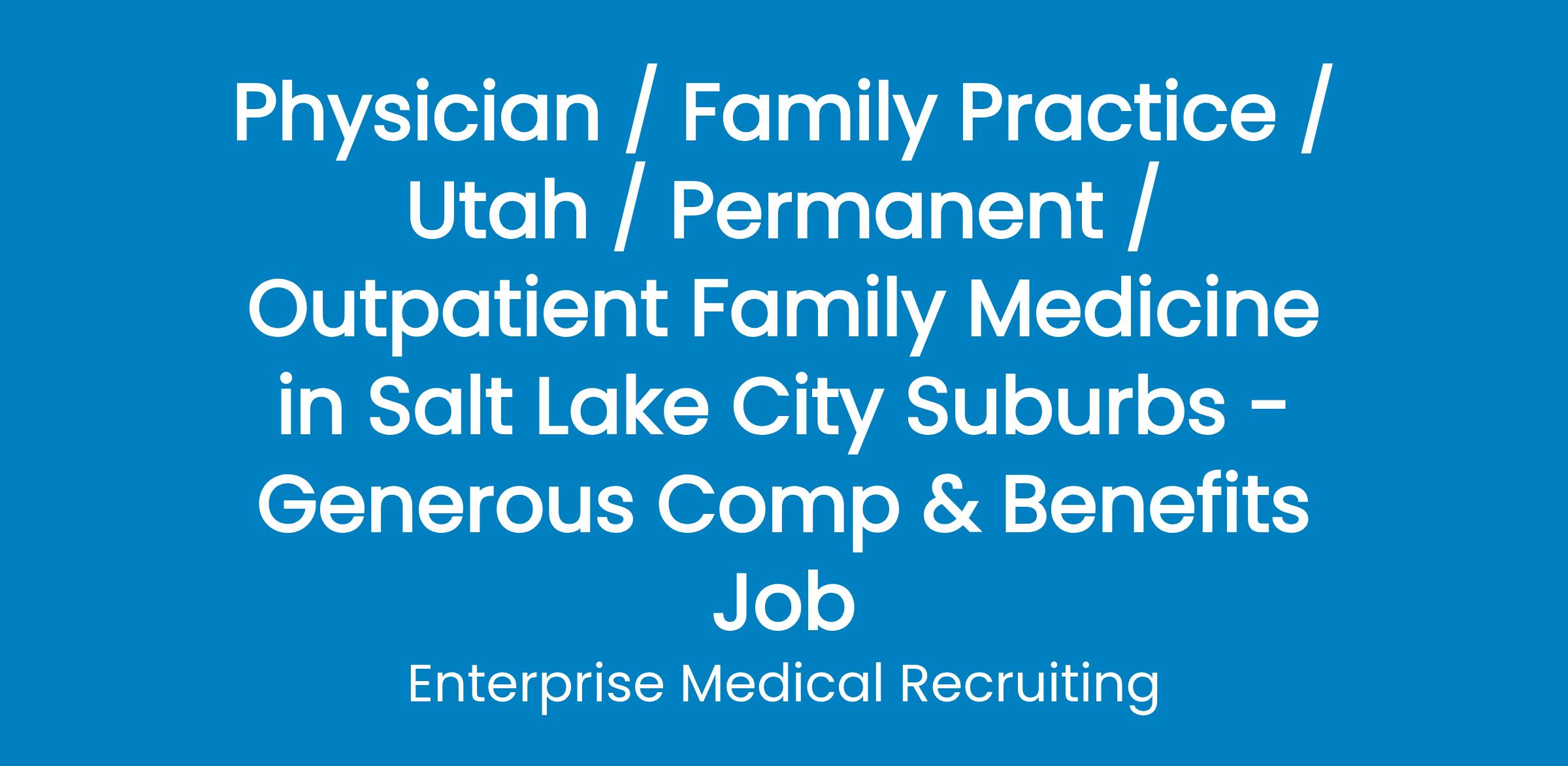 A Family Medicine physician is needed to join a 25-provider group with sites in Magna and West Valley City, Utah.