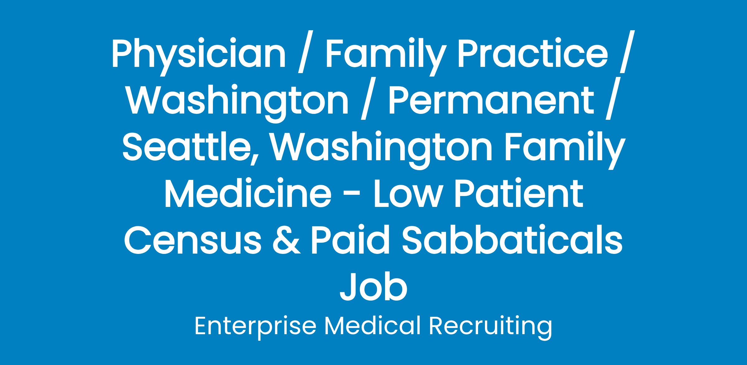Enterprise Medical is assisting a unique Primary Care group delivering the highest-quality care and services available in their search for Family Medicine physicians in Seattle, Washington.