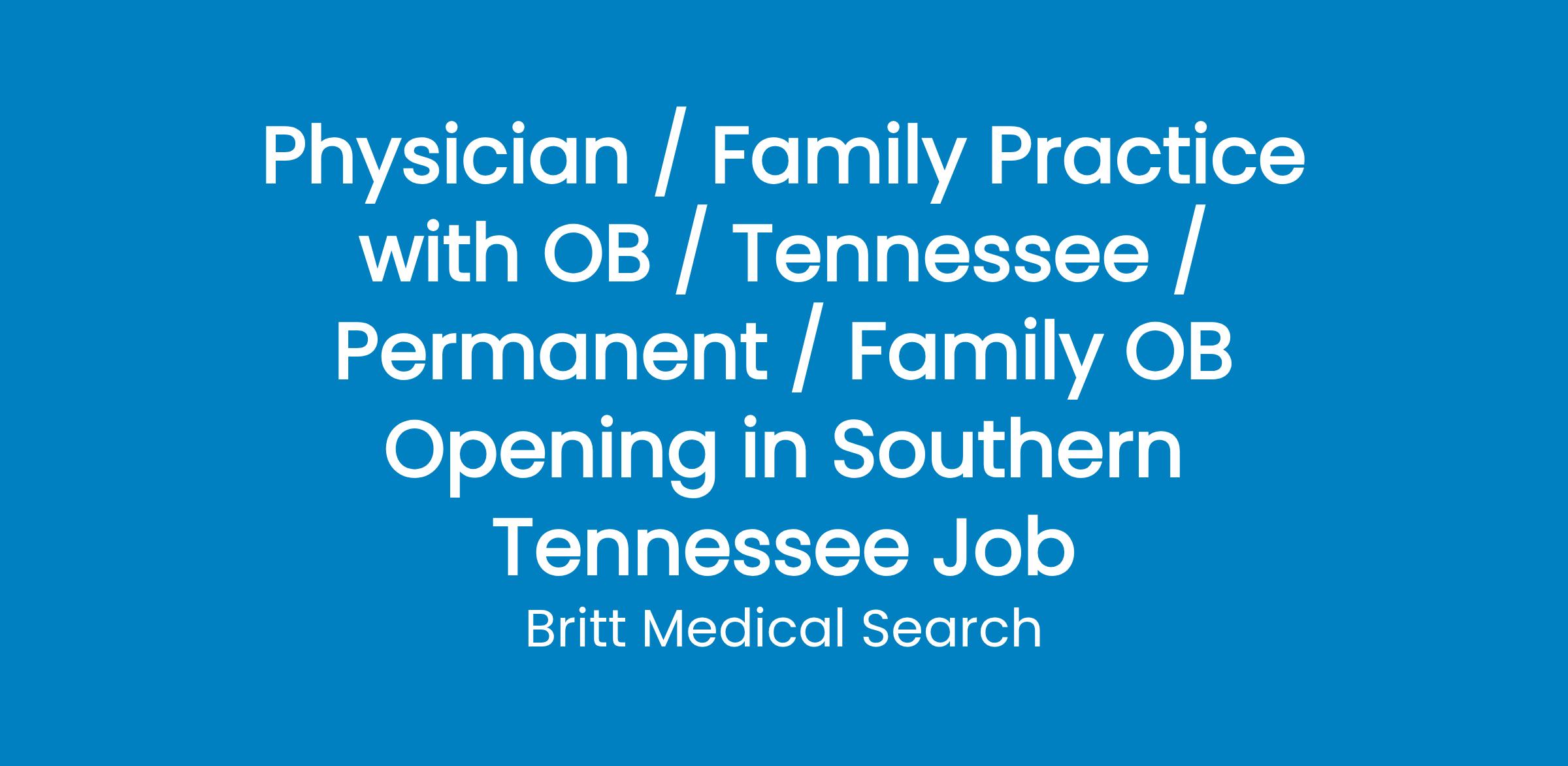 Health System is assisting in the recruitment of a Family Medicine physician who has completed or is in the process of completing an Obstetrics Fellowship, to join our hospital employed team in southern middle Tennessee!