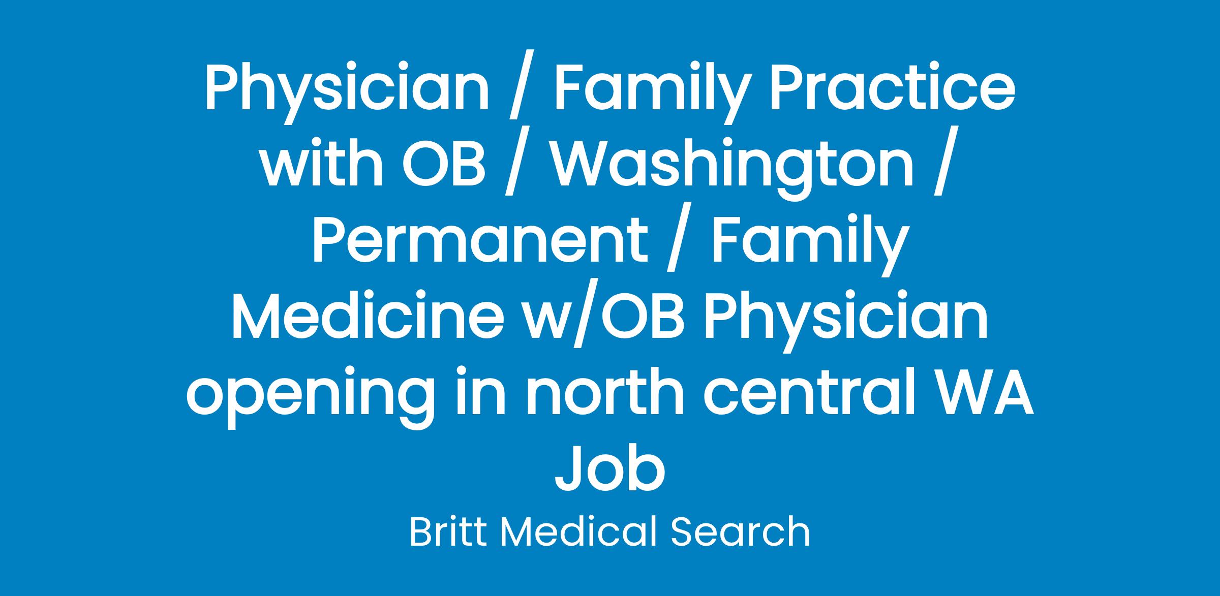 Medical Group is currently seeking a BE/BC Family Medicine Physician with OB to join their team in north-central Washington state.