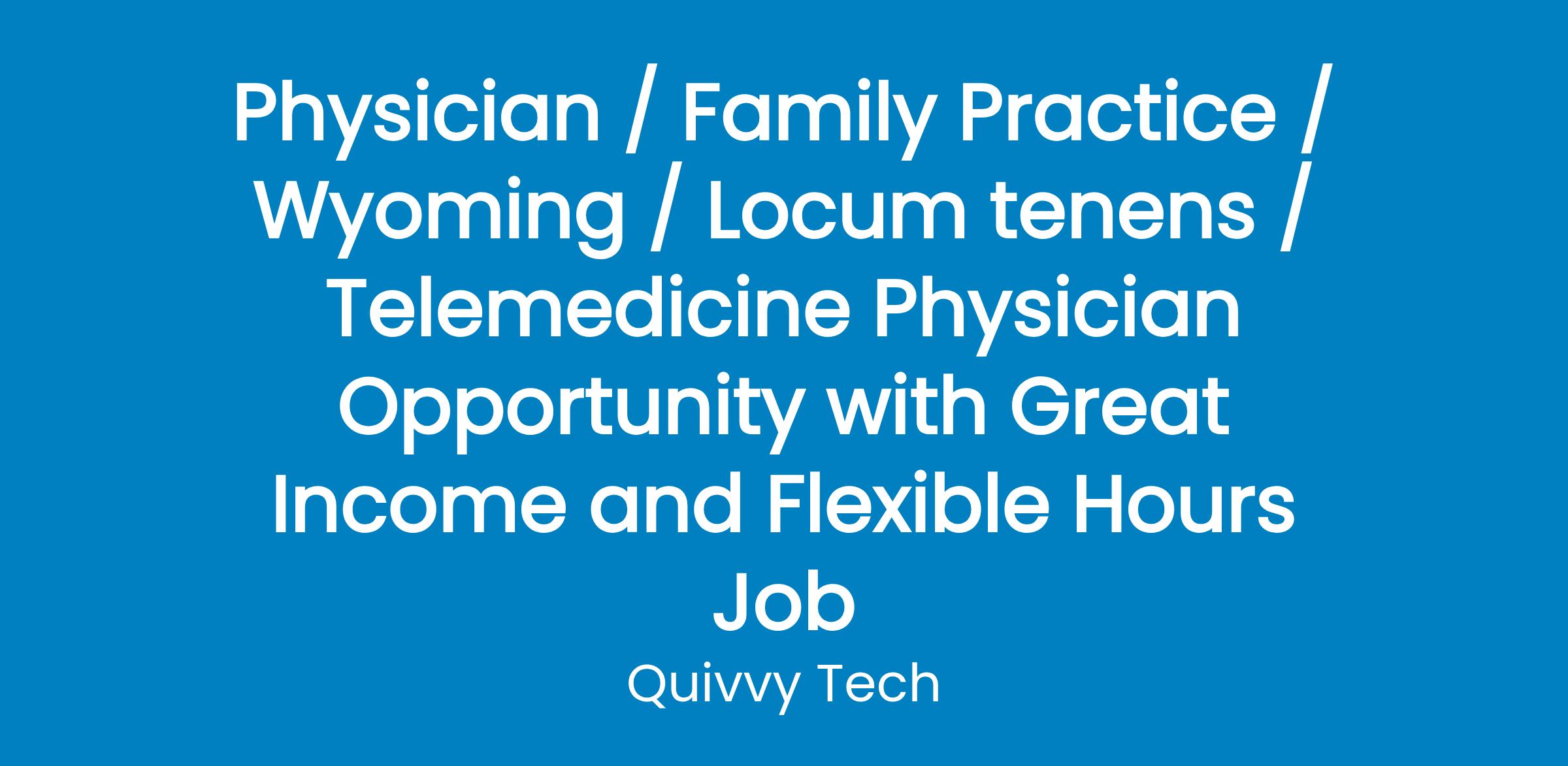 Physician / Family Practice / Wyoming / Locum tenens / Telemedicine Physician Opportunity with Great Income and Flexible Hours Job