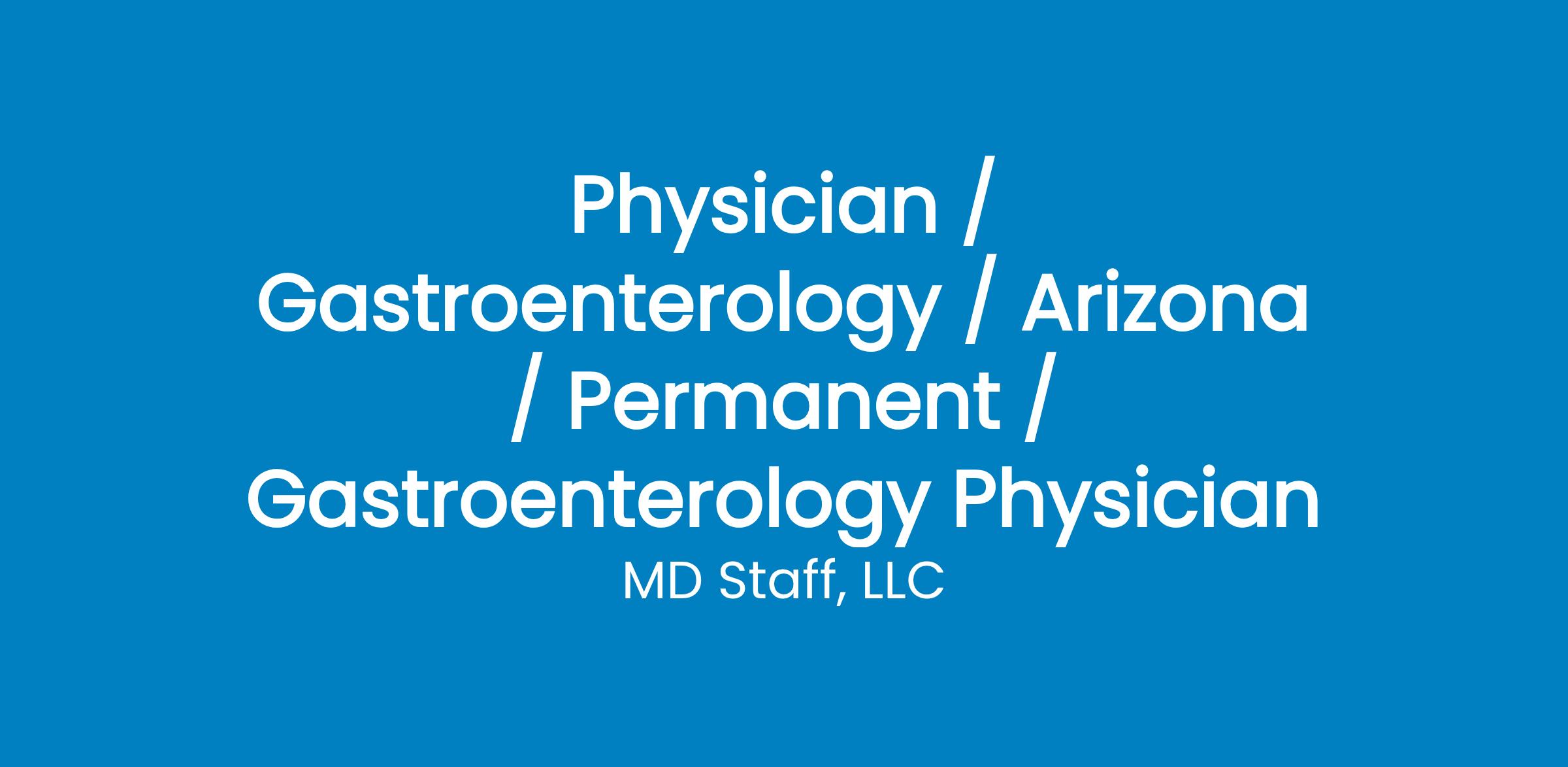 Permanent opportunity for a Gastroenterology Physician Job in Arizona Hospital employed opportunity joining a group of other employed specialty providers Physician must be board-certified or board-eligible in the US General gastroenterology High patient volume opportunity Competitive salary with bonus structure Relocation assistance Commencement bonus Medical loan repayment assistance Located in LAKE HAVASU CITY, AZ If you are interested in hearing more about this opportunity, please call or text HDA at . You can also reach us through via email at . Reference Job ID # j-145136 .
