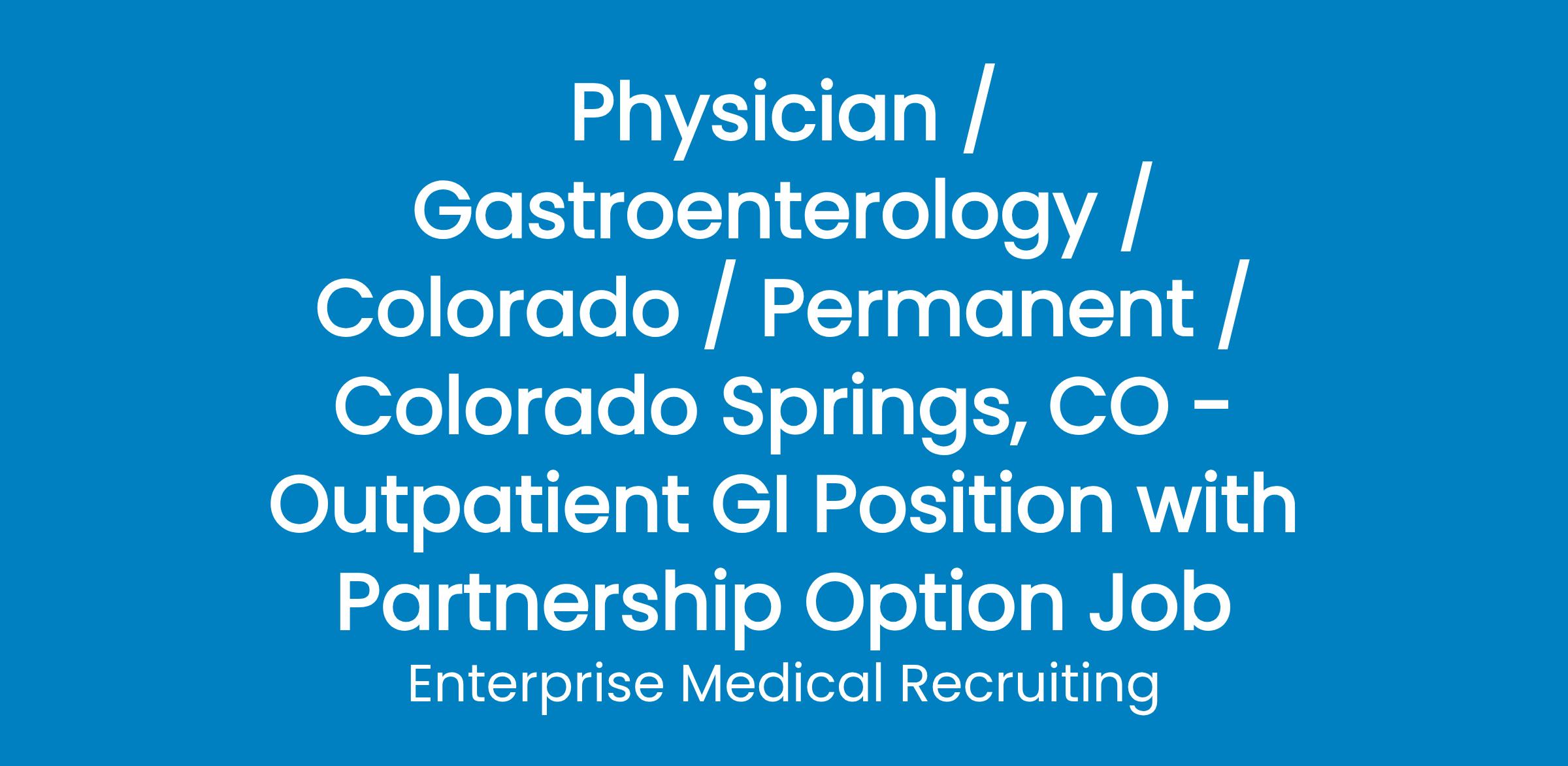 Enterprise Medical Recruiting is assisting a large GI group in Colorado to hire a NEW Gastroenterologist!They are seeking a clinical-based Gastroenterologist working in the office and doing procedures in the ASC.