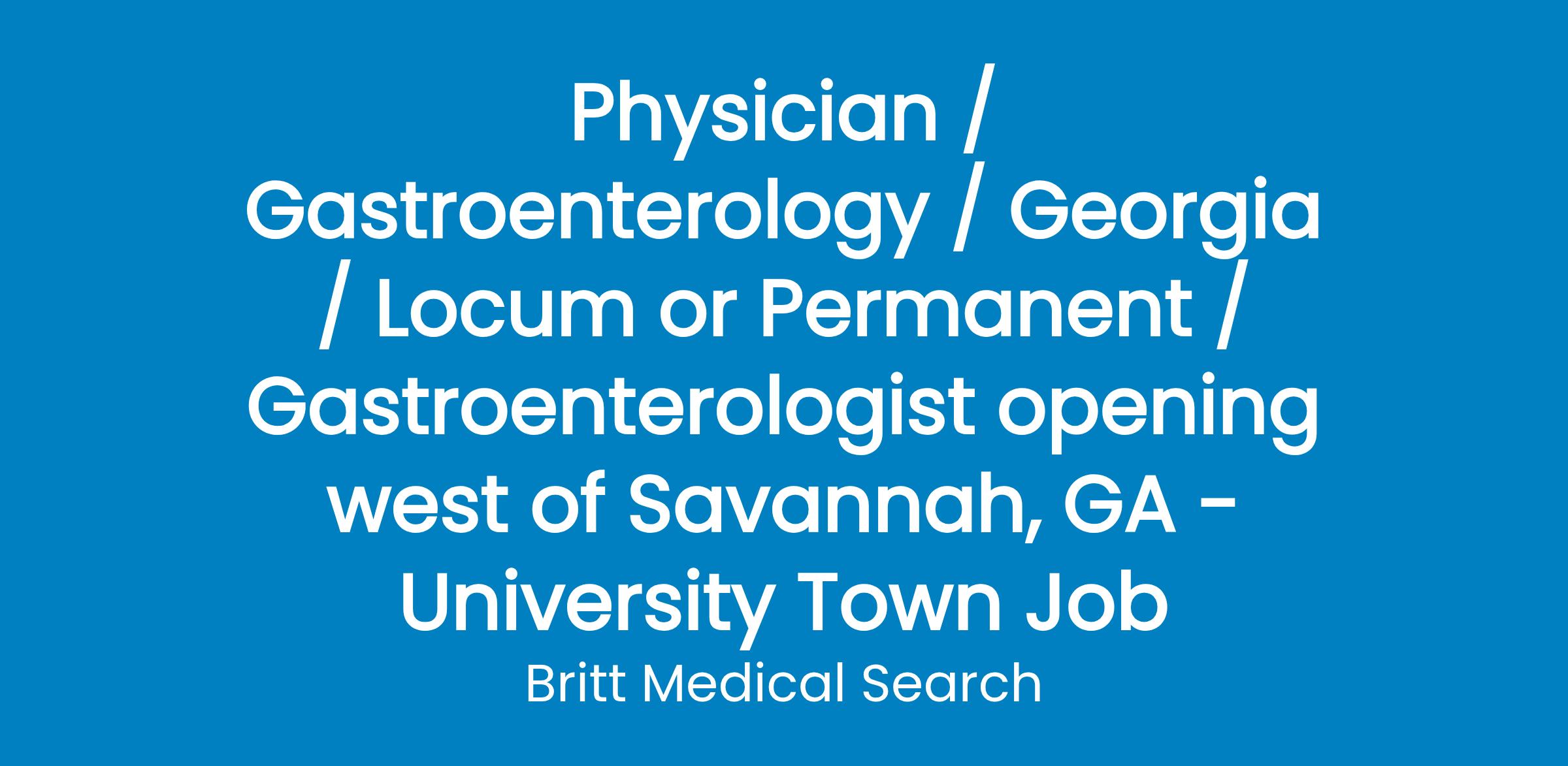 Medical Center is seeking a BC/BE Gastroenterologist to join a single-specialty group in the area with three other providers. New grads are welcome to apply.